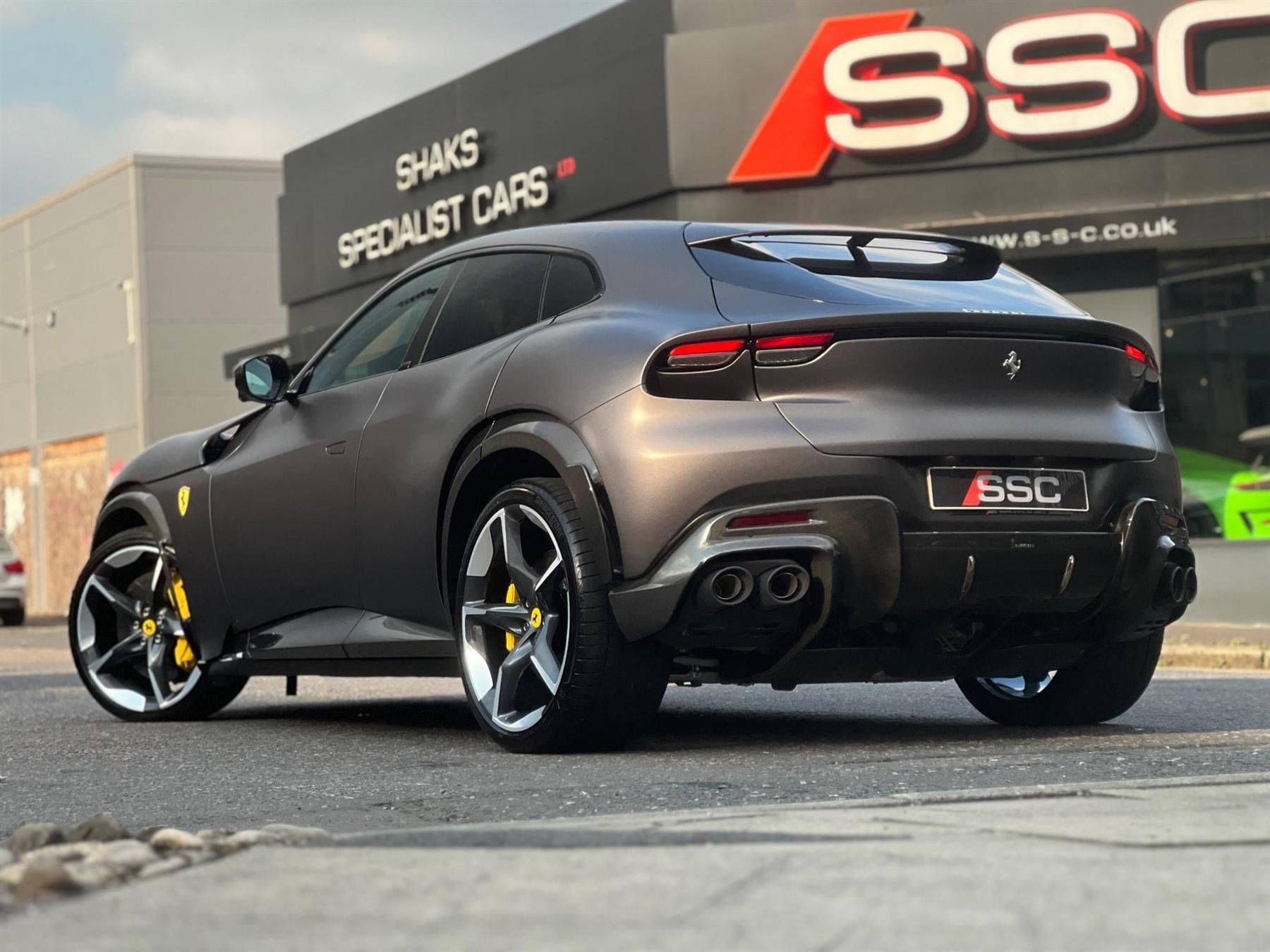 Stunning and Rarely Specified Ferrari Purosangue V12 Finished In Special Order Grigio 812S Opaco (Matte Paint) With Cuoio Leather. Extensive Spec Inc: Allestimento Speciale Option, Paint Protection Film, Panoramic Roof, Suspension Lifter, Yellow Brake Calipers, CEXC With Special Carbon, Rear Diffuser In Carbon, Carbon Underdoor Cover, Carbon Outer Mirrors, Carbon Instrument Cluster, Carbon Door Panels, Carbon Exterior Sill Kicks, Carbon Upper Tunnel Trim, Coloured Inner Details, Colour On Request For Upper Trim, Horse Stitched On Headrests, Black Ceramic Exhaust Pipes, Carbon Front Spoiler, Coloured Mats With Logo, Sedili Anteriori Massage and Ventilated Seats, Carbon Steering Wheel + LEDs, Scuderia Shields, Aluminium Driver and Passenger Footrests, Privacy Glass, Coloured Special Stitching, Heated Steering Wheel, Specific Design Seats, Titanium Wheel Bolts, Upper Part In Coloured Leather. This Purosangue Comes With Remainder Of Manufacturers Warranty and Service Pack. VAT QUALIFYING.