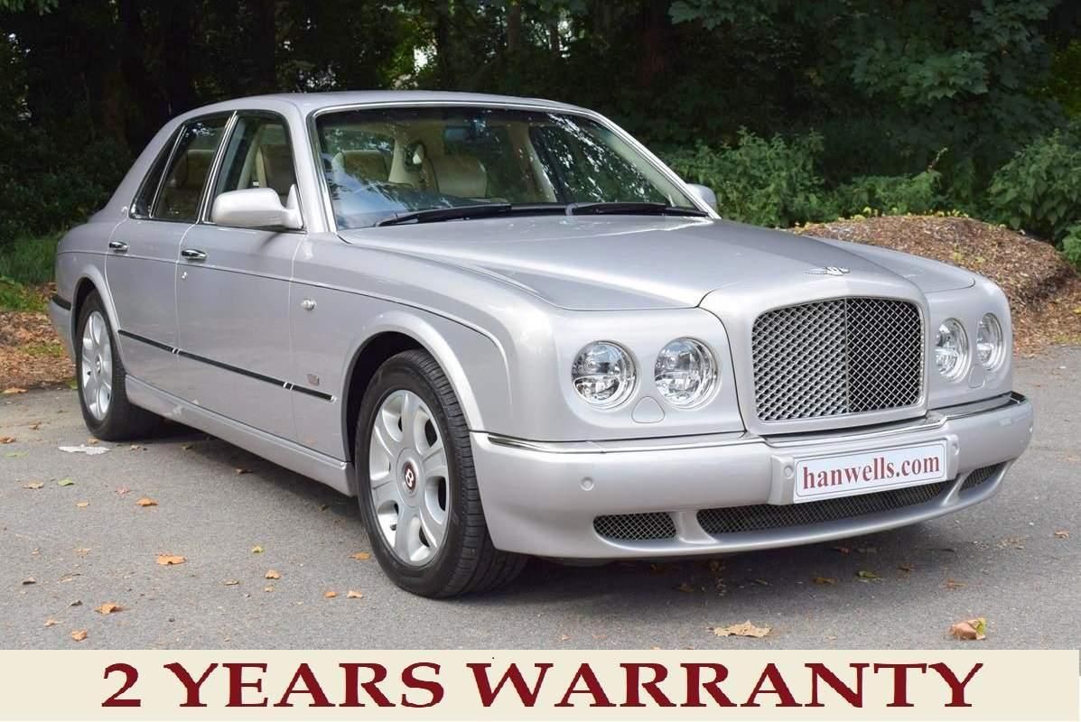 This is one of our 50 Bentleys in stock: 2005 Model Bentley Arnage R Mulliner. Finished in Silver Storm with 18 inch alloys, a Black coach line and electric sunroof. The interior is in Parchment with Walnut veneers. Fitted with picnic tables, vanity mirrors, rear refrigerator, cocktail cabinet and fully electric and heated rear seats. With Full Service History, the car is known to ourselves and is in immaculate condition.Please see our website www.hanwells.com to view our full selection.