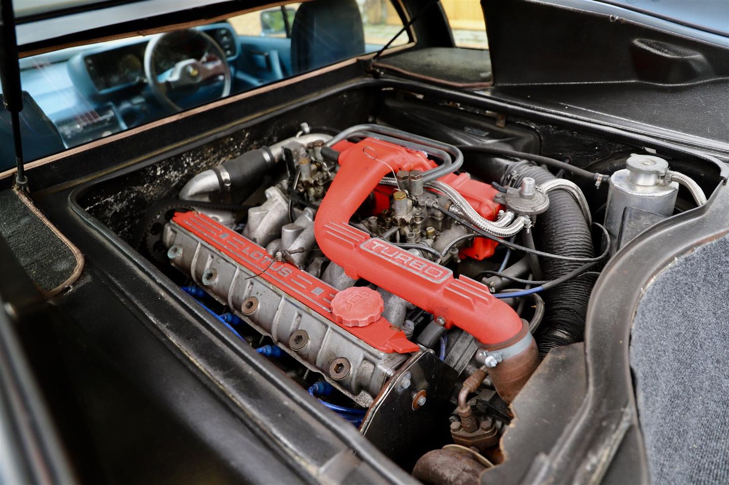 Lotus Esprit Turbo HC, 1986. Glacier Blue metallic with full blue leather and air-conditioning. 48,000 miles with a comprehensive history file. Supplied by the London Lotus Center in October 1986. The Esprit spent some of its earlier years in the 1990s in Japan, where most Lotus models are very popular indeed. The car was thoroughly serviced out there as can be seen in the comprehensive history file. Replacement clutch at 45,000 miles with all new drive belts and water pump. The HC Turbo is very rare in the light Glacier Blue metallic and suits the Giugiaro designed wedge shape admirably. This is only one of 6 in Glacier Blue metallic and the only in this colour with full blue leather. Comes with a full MOT and service and can be delivered anywhere in the world. Refurbished water pump and stainless steel header tank fitted. Original refurbished BBS alloys. Letter of Authentication and Certificate of Provenance from the Lotus Archives.