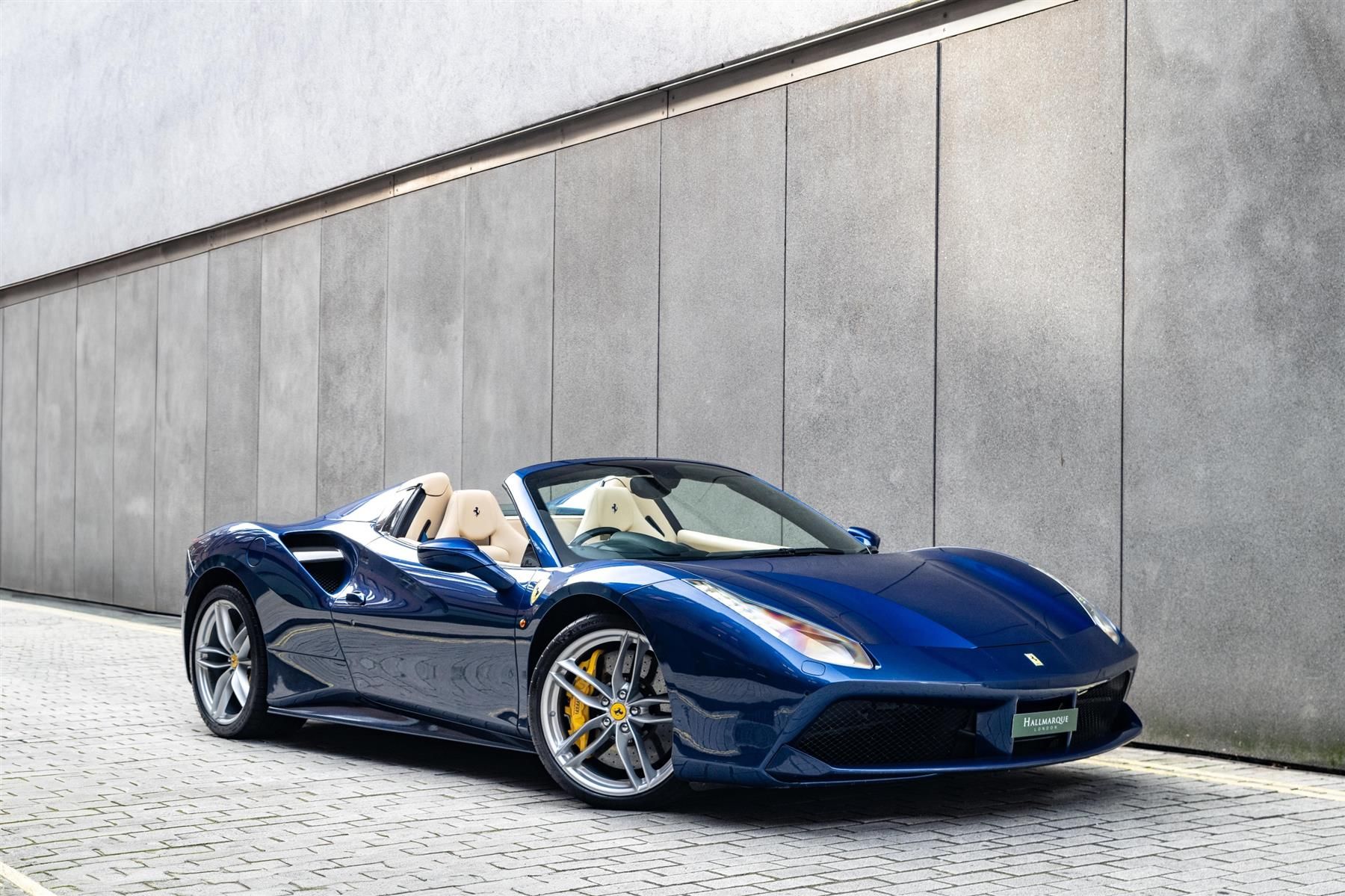 - Carbon Fibre Racing Package - Ferrari Power15 warranty until 02/2026 - Full Supplying Dealer History - Service plan until 07/2025 - 1 Previous Owner - Full Paint Protection Film - 2018/18 Ferrari 488 Spider in Blu Tour de France over Crema hide, with contrasting Blu stitching and carpets. Registered in July 2018, this example has had just one previous owner since new. Meticulously maintained, its condition is superb throughout, with the entire exterior protected by premium paint protection film, ensuring its finish is free from any marks and stone chips. The elegant pairing of Blu TDF with the lighter tones of the Crema leather interior is a testament to Ferrari's flair for timeless design. The luxurious cabin is further elevated by Daytona racing seats, accented by Blu stitching and the iconic Cavallino stitched into the headrests. This refined combination exudes sophistication while still hinting at the thrilling performance that lies beneath the surface. In terms of specification, this 488 Spider is exceptionally well-equipped. The adaptive frontlight system ensures optimal visibility in all conditions, while the carbon fibre racing package, rear air-ducts, side air splitter, and B-post trim - adds a more aggressive and sporty aesthetic. Large Daytona racing seats offer superb comfort and support, perfect for both long-distance cruising and spirited driving. The exterior design is accentuated by signature Ferrari details such as yellow brake calipers and Scuderia Ferrari shields on the front wings, with 20-inch forged wheels not only enhancing the car's visual presence but also improving handling and performance. The yellow rev counter is a striking touch inside, complementing the high-quality materials throughout, and a NAVTRAK anti-theft system adds an extra layer of security. For modern convenience, Apple CarPlay is included, allowing seamless smartphone connectivity. Powered by Ferrari's award-winning 3.9L twin-turbocharged V8 engine, this 488 Spider delivers exhilarating performance and incredible driving dynamics. Its retractable hard-top roof offers the option of enjoying open-air motoring at the touch of a button, while the ride quality and visibility make it versatile enough for everyday driving. The practicality extends to its impeccable service history, with every service carried out by the supplying dealer, H.R. Owen, most recently in January, having now covered 18,217 miles. For added peace of mind, this 488 Spider is still under Ferrari's comprehensive warranty until February 2026, ensuring full confidence for its next owner. Offering an irresistible blend of performance, luxury, and everyday usability, this Ferrari 488 Spider is now available and ready for its next custodian.