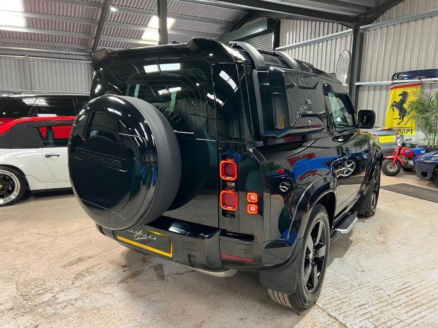 Black interior.1 OWNER,URBAN EXTRAS & SUPERB,Just Arrived This Fabulous Example Of A Defender 90 3.0d HSE,FULLY LOADED,URBAN EXTRAS,Genuine 3k,Presented In Santorini Black Pearl.. With Factory Black Pack,Full Exterior Package Of Extras-Urban Light Bar,Urban Arch Kit In Body Colour,Urban Rear Roof Spoiler,Urban Front A Bar In Body Colour,Snorkel Kit,Side Steps,Four Mudflaps,Side Folding Ladder,Side Box In Body Colour,Fully Colour Coded In Santorini Black Pearl,Black Tinted Headlights,LED Tinted Rear Lights,Black Bonnet Guards,Black Wing Flutes,Black Wheel Cover,Black Roof Light Bar,Black Lettering & Black Branding,British Racing Green Brake Calipers,Upgrade 20" Gloss Black Alloys,Perfect Condition,Window Flutes,Black Gloss Mirrors,Complimented With Full Ebony Leather,Sports Seats,Fully Electric Memory Seats,Electric Seat Retract,Heated Seats,Satellite Navigation,Apple Car Play,AUX Input,Mobile Phone Preparation,MERIDIAN SOUND PACK,Speed Sign Warning,Surround Cameras,Voice Control,Automatic Dual Climate Control,Distance Radar Cruise Control,Speed Limiter,Front & Rear Parking Aids,Electric Power Folding Mirrors,Vanity Lights On Exterior Mirrors,Keyless Go Function,Smart Key,Electric Steering Wheel Rake Adjust,Multi Function Steering Wheel,Heated Steering Wheel,Electric Windows,Opening Panoramic Glass Roof With Electric Blind,Fridge,Cupholders,Front Cubby Box,Overmats,THE LIST IS ENDLESS,1 Owner,Transferable Land Rover Warranty,2 Keys,HPI CLEAR,WILL VALET & DETAIL,Drives Like New-As You Would Expect !! ABSOLUTELY PERFECT & STUNNING,Fantastic Performance & Great MPG,Lovely Being The 3.0 TD,Perfect Tow Vehicle,Such An Amazing Motor Car,Was an Absolute Fortune When New,Beat The Wait !! Competitive Finance Arranged,May PX,Videos Available,Non Contact Selling If Required,UK Delivery Included,Just A Super Super Example,PORSCHE ALSO & CLASSIC CARS ALSO PURCHASED,KARMANN CLASSIC CARS,MODERN DAY KLASSICS,RIPLEY,SURREY