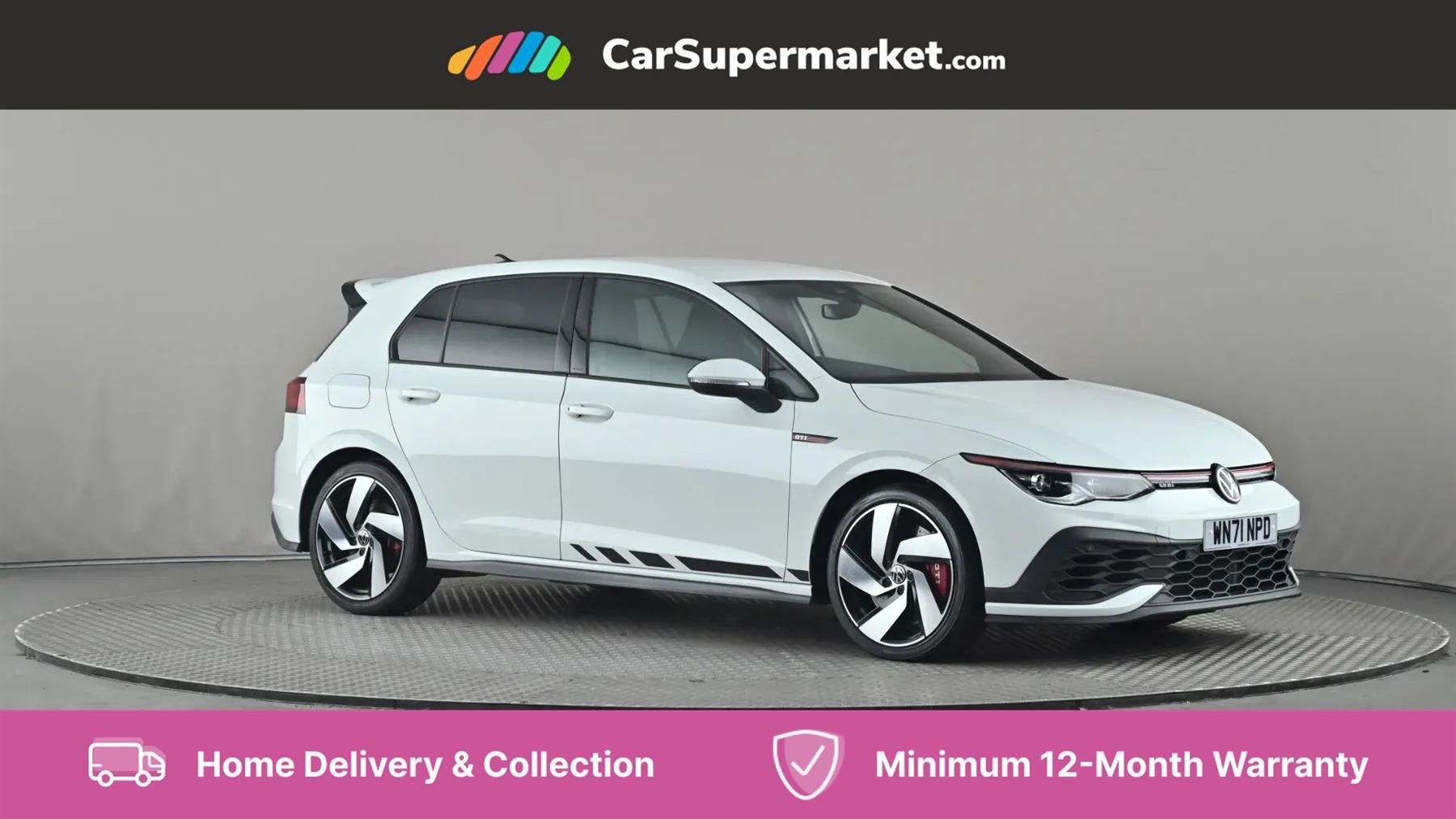 Adaptive Cruise Control, Wireless Phone Charging, Android Auto, Apple CarPlay, Heated Seats and Steering Wheel, Keyless Entry and Start, Lane Assist, Parking Sensors, 18" Alloy Wheels;This is a 2021 Volkswagen Golf GTI - The cabin combines sporty and premium elements, featuring bucket-style sports seats upholstered in Alcantara and cloth with contrast stitching. Unique 18-inch alloy wheels in a sporty design complement the car?s dynamic profile. Minimum 12-months warranty included with all our vehicles, as well as a no-quibble 15-day money back guarantee. Contact a member of our knowledgeable team for any help you need to find a financial package that suits you. When buying a vehicle with CarSupermarket.com, you can rest assured knowing that they're expertly prepared and valeted, HPI Clear, and with a minimum 6-month MOT and recent service. You can reserve your new vehicle for £199 and arrange to collect from one of our ten branches or 2 collection centres nationwide! Alternatively, you can have it delivered direct to your door with our home delivery service. If you have a vehicle to part exchange, CarSupermarket.com can value your current car in 30 seconds free of charge.