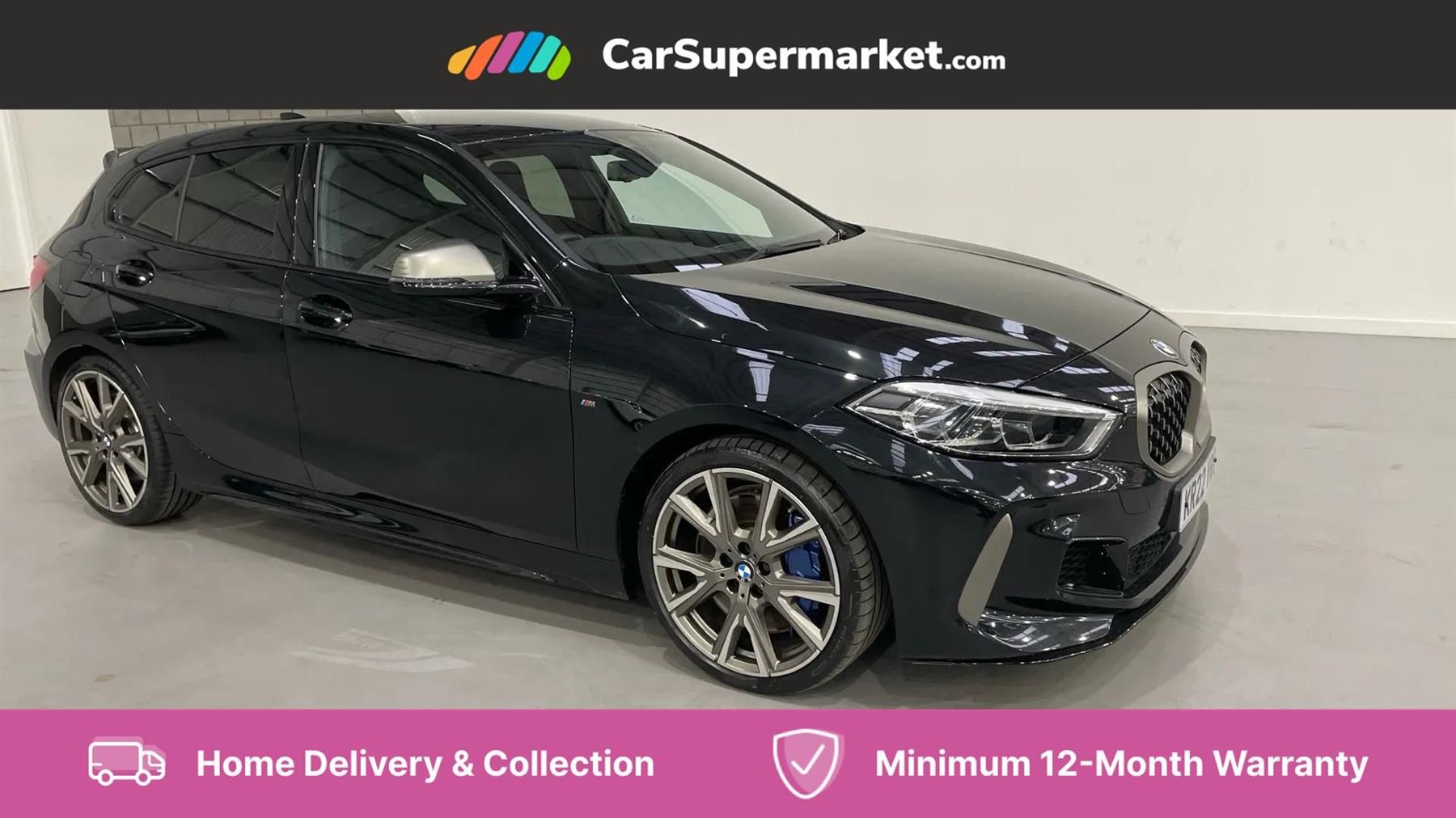 Bluetooth, Wireless Phone Charging, Cruise Control, Keyless Entry and Start;This is a 2022 plate BMW 1 Series - The BMW 1 Series M135i xDrive Step Auto [Pro Pack] is a high-performance variant of the popular 1 Series, blending sporty dynamics with cutting-edge technology and luxurious features. You can reserve your new vehicle now for £199, with affordable finance and competitive APR rates. Contact a member of our expert team for all the assistance you may need in finding a financial package that suits you. Arrange to collect your new vehicle from one of our ten branches nationwide, or to be delivered straight to your door with our home delivery service. By purchasing a vehicle with CarSupermarket.com, you can rest assured that all our vehicles are lovingly prepared, HPI Clear, and expertly valeted, with a recent MOT and service, for excellent interior and exterior condition guaranteed. Get a minimum of 12-months warranty for complete peace of mind, included as standard on every vehicle as well as a no-quibble 15-day money back guarantee. If you have a vehicle to part exchange, CarSupermarket.com can value your current car in 30 seconds free of charge.