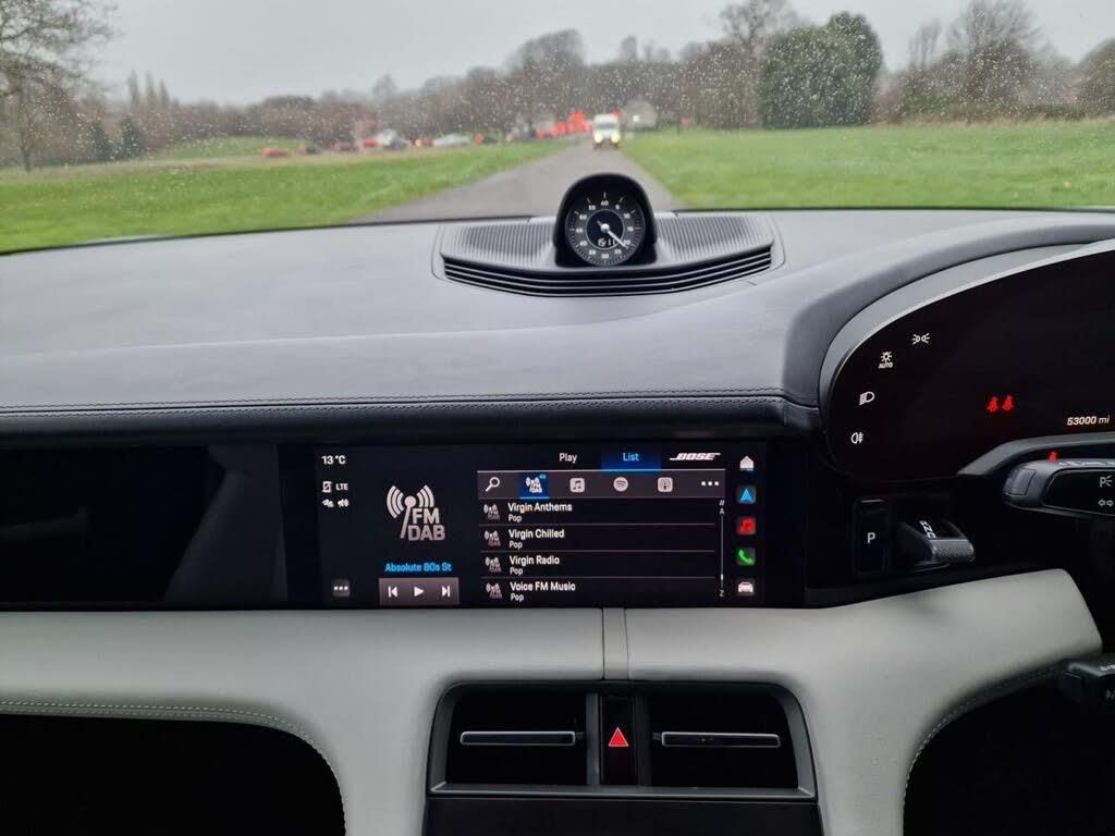 11kW AC On-Board Charger, 12v Electrical Socket in Rear Luggage Compartment, 12v Electrical Socket in the Centre Console Storage Compartment, 16.8in Curved Display, 2 USB-C Charge Ports in the Rear, 2 USB-C Connectivity and Charge Ports in the Centre Console Storage Compartment, 20in Alloy Wheels - Taycan Turbo Aero, 3-Point Automatic Seat Belts with Pre-Tensioners - Front and Outer Rear Seats and Front Force Limiter, 4-Point LED Daytime Running Lights, 50kW DC On-Board Charger for use of Public Charging Stations with a voltage of 400V, ABS - Anti-lock Brake System, Accent Package in Black, Active Bonnet System, Active Carbon Fine Dust Filter, Adaptive Air Suspension including Porsche Active Suspension Management - PASM, Advanced 2-Zone Climate Control, Aluminium Double-Wishbone Front Axle, Aluminium Multi-Link Rear Axle, Auto-Deploying Door Handles, Automatic Headlight Activation including Welcome Home Lighting, Automatic Hold Function, Automatically Dimming Exterior and Interior Mirrors, B-Pillar Clothes Hook on Driver and Passengers Side, BOSE Surround Sound System with 14 Speakers Including Subwoofer and a Total Output of 710 Watts, Brake Calipers Painted in White Finish, Brake Pad Wear Indicator, Bumpers Comprising High-Strength Cross Members and Two Deformation Elements Each with One Threaded Fixture Point for Towing Eye Contained in On-Board Tool Kit, Cable between Charger and Vehicle - 7.5m, Centre Console with Direct Touch Control, Charge Port on Driver and Front Passenger Side, Collision and Brake Assist, Comfort Seats - Front 14-Way Electric with Memory Package, Cruise Control including Adaptive Speed Limiter, Curtain Airbags Along Entire Roof Frame and Side Windows from the A-Pillar to the C-Pillar, DC Charging at Public Charging Stations with Voltage of 800V, Digital Radio, Door Sill Guards in Brushed Aluminium, Driver Personalisation, Electric Parking Brake, Electric Windows - Front and Rear, Electrically Adjustable and Heated Exterior Mirrors - Aspherical on Drivers Side, Engine Bonnet - Rear Tailgate - Doors - Side Panels - Roof and Front Wings in Aluminium, Engine Immobiliser with Remote Central Locking and Alarm System with Radar-Based Interior Surveillance, Exterior Mirror Lower Trims Painted in Exterior Colour Including Mirror Base in Black, Floor Mats, Four-Piston Aluminium Monobloc Fixed Brake Calipers at Rear, Front Centre Console Armrest with Integrated Storage Compartment, Front Side Airbags, Full Size Airbags for Driver and Front Passenger, Full Surface Aerodynamic Underbody Panelling, Fully Galvanised Steel-Aluminium Hybrid Lightweight Bodyshell, Heat Pump, Heated Rear Window with Auto-Off Function, Illuminated Vanity Mirrors for Driver and Front Passenger, Integrated Front Headrests, Integrated Porsche 4D Chassis Control, ISOFIX Mounting Points for Child Seats on Outer Rear Seats, Keyless Drive, Knee Airbags for Driver and Front Passenger, Lane Keeping Assist including Traffic Sign Recognition, LED Interior Lighting Concept, LED Matrix Headlights including Porsche Dynamic Light System Plus, Light Strip, Lower Valance with Inlays Painted in Exterior Colour, Luggage Compartments at Front and Rear, Manual Adjustment of Seat Belt Height for Driver and Front Passenger Seats, Mobile Charger Plus with 4.5m Vehicle Side Cable, Model Designation on Tailgate in Silver Colour, Multi-Collision Brake, Multi-Function Sports Steering Wheel in Leather, ParkAssist - Front and Rear with Visual and Audible Warning, Parking Pre-Climatisation, Pedal Pads Edges in Stainless Steel, Performance Battery Plus, Porsche Active Aerodynamics with Active Air Intake Flaps and Adaptive Rear Spoiler, Porsche Communication Management PCM Includes Navigation Module Mobile Phone Preparation Audio Interface and Voice Control System, Porsche Connect with Apple Carplay, Porsche Intelligent Range Manager, Porsche Logo in Glass Look Integrated into Rear Light Strip, Porsche Recuperation Management - PRM, Porsche Stability Management - PSM I