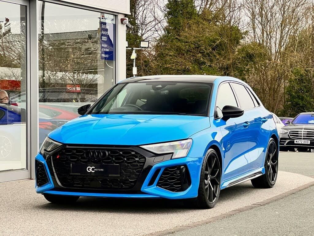 2.5 TFSI Launch Edition Sportback S Tronic Quattro. Factory Options: Black Fine Nappa Leather Interior.|Standard Specification: Panoramic Roof, Heads Up Display, RS Sport Exhaust System, Adaptive Cruise Control, Bang and Olufsen Premium Sound System with 3D Sound, Black Styling Pack, 19 Matt Black 5-Y-Spoke Alloys, Adaptive Suspension with Audi Drive Select, Advanced Key, Ambient Lighting Pack, Electrically Adjustable Front Heated Sports Seats, Speed Limiter, Privacy Glass, Reversing Camera, Carbon Fibre Interior Inlays, Audi Matrix LED Headlights with LED Rear Lights - Dynamic Front and Rear Indicators - Headlight Cleaning System, Audi Pre-Sense Front, Audi Smartphone Interface, Audi Virtual Cockpit with RS Specific Display, Camera Based Traffic Sign Recognition, Electric Folding Heated Memory Wing Mirrors, Dual-Zone Electronic Climate Control, Hill Hold Assist, Lane Departure Warning, Bluetooth, DAB Digital Radio, MMI Navigation Plus with MMI Touch, Parking Assist with Parking System Plus, 60/40 Split Folding Rear Seats, Red Brake Calipers. Finished in Turbo Blue Paint. Pan Roof, Pano Roof, Panorama Roof, Sunroof, Glass Roof.Our bespoke customisation services include Upgrade Alloy Wheels/Colour Changed & Refurbishment, Carbon Dipping, Bodykits, Window Tints, Black Pack / De-chroming. We offer a comprehensive selection of luxury vehicles including, Rolls-Royce, Bentley, Lamborghini, Ferrari, Aston Martin, McLaren, Porsche, Maserati, Audi, Mercedes-Benz, BMW, Lexus, Jaguar, Land Rover, Tesla, Alfa Romeo, Lotus, Alpine and much more. All our cars are HPI clear. Please contact us for your own personal video presentation of this particular car. We offer competitive finance rates with our in-house team from PCP, lease purchase and HP. Whilst we make every effort to ensure that the specification and technical information for the cars on our website is correct, some of it is supplied by third party providers and we cannot guarantee its accuracy. It is therefore important that you do not solely rely on this information.-PAN ROOF|BLACK PACK|B&O SOUND