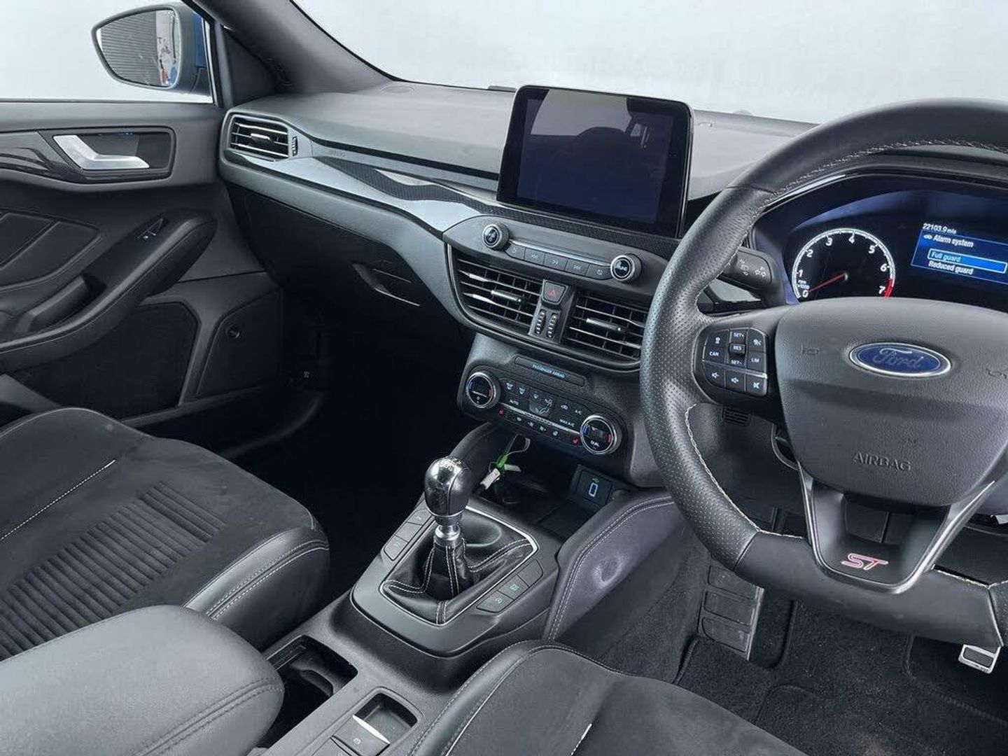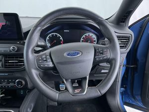 Recaro Ebony Foundry cloth/leather, 19in Alloy Wheels - 5x2-Spoke - Magnetite Finish, ABS - Anti-lock Braking System, Acoustic Laminated Windscreen, Adaptive Front Lighting System, Airbags - Driver and Front Passenger, Airbags - Front Side Impact, Airbags - Front and Rear Side Curtain, Alarm - Thatcham Category 1 with Volume Sensing and Perimeter, Alloy Finish Pedals, Automatic Dimming Rear View Mirror, B&O PLAY Premium Audio System, Black Finish on Upper Door Line, Centre Console - Premium with Sliding Armrest - Cupholder with Sliding Cover - 12V Front Power Point, DEATC - Dual-Zone Electronic Automatic Temperature Control, Dark Headliner, Door Handles - Body Colour, Door Mirrors - Electrically-operated - Heated - Power-Foldable - Body Colour Housings - Side Indicators - Puddle Lights, Driver Assistance Pack, ESC - Electronic Stability Control, Electric Parking Brake, Flat Bottomed Steering Wheel with Red Stitching, Ford Easy Fuel System, Ford Key Free System - Keyless Entry with Keyless Start, Ford SYNC3 DAB Navigation System, FordPass Connect, Front Passenger Airbag Deactivation Switch, Front Passenger Seat - Rotary Recliner, Front Seat - Drivers Electrically-Operated Lumbar Support Adjustment, Front Seat - Drivers Power Height - Fore-Aft - Power Recliner and Lumbar Seat Support, Front Seat - Passenger Manual Height - Lumbar and Fore-Aft Adjustment, Front Seat - Passengers Manual Lumbar Support Adjustment, Front Seatback Map Pockets - Driver and Passenger, Front Seats - Driver and Passenger Heated Seats, Front and Rear Floor Mats - Metal Grey Stitching, Front and Rear Seatbelt Minder, Gearshift Knob - ST-Line Aluminium, Headlight Bezel - Black, Headlights - Automatic On-Off, Heated Steering Wheel, Hill Start Assist, Intelligent Speed Assistance, Keyless Entry, LED Daytime Running Lights, LED Front Fog Lights with Cornering Function, Large Rear Spoiler - Body Colour with Centre High Mounted Stop Light, Load Compartment Area Cover, Load Floor Carpet, Locking Wheel Nuts, MyKey, Overhead Console - Medium Length with Front and Rear LED Courtesy Lights, Parking Sensor - Front and Rear, Polished Twin Tailpipe, Post Collision Braking, Power Door Deadlocks - Double Locking, Power Steering, Pre-Collision Assist with Autonomous Emergency Braking and Pedestrian-Cyclist Detection, Quickclear Heated Windscreen, Rain Sensitive Windshield Wipers, Rear Bumper - Unique ST-Line Body Colour with Body Colour Extension, Rear Centre Headrest, Rear Fog Lamps, Rear Lights - LED, Rear Privacy Glass, Rear Seat - 60-40 Split Folding Seats, Rear Seat Fixed Cushion, Rear-View Parking Camera - 180 Degree Display, Red Brake Calipers, Remote Central Locking and Engine Immobiliser, Scuff Plates - Front - Polished Stainless Steel with Etched ST Logo, Seats - ISOFIX Mounting Provision for Child Seats, Selectable Drive Mode, Side Skirts - Unique ST-Line Body Colour, Soft Console Knee Pads with Red Stitching, Steering Column - Rake and Reach Adjustment, Steering Wheel - 3-Spoke - Leather Trimmed, Suspension - ST Sports, Tailgate Wash-Wipe, Traction Control - TC, Trip Computer, Tyre Pressure Monitoring System, Unique Door and Instrument Panel Inserts, Unique ST Upper and Lower Grille with Full Bodystyling Kit - Front and Rear ST Badge, Windows - Electrically Operated Front and Rear with One Touch Opening and Closing, e-LSD - Electronic Limited Slip Differential, Performance Blue, Head-Up Display, ST Performance Pack