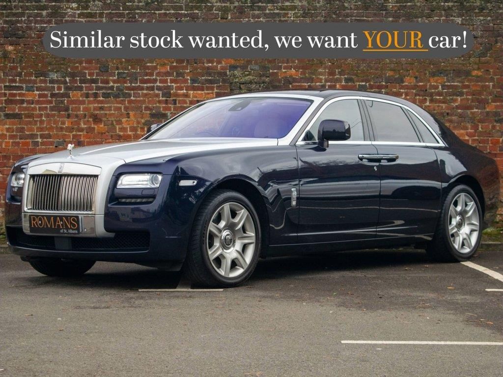 DEPOSIT TAKEN-SIMILAR WANTED! Just serviced by Rolls Royce, Romans of St Albans are delighted to present this Elegant Rolls Royce Ghost finished in Dark Indigo paintwork with Silver Satin bonnet finish and Seashell Leather/Malabar Veneer interior. This exquisite example benefits from only ever being service by Rolls Royce main dealer and has a massive spec list with over £45,000 worth of extras to include: Drivers Assistance Systems Pack- Three- Ghost, Camera System, Leather- Extended & door pocket Lighting, 20in Alloy Wheels, Veneer- Malabar, Silver Satin bonnet finish, RR monogram all headrests, Colour keyed boot Trim, Lambswool rugs - footwells, Picnic tables, Night Vision, Rear theatre configuration with 6 disc Multi- Media Changer, Head-Up Display, TV tuner, Active Cruise Control with stop & go, Lane Departure Warning, High Beam Assist, Adaptive Headlights, Individual Rear Seats, Massage function for Rear Seats, Ventilated Front&Rear Seats, Massage function for Front Seats, Panorama Electric Glass Sunroof, Comfort access System, Garage door opener...FINANCE AVAILABLE. FREE ON-SITE PARKING (ASK FOR DETAILS.) Romans after care package includes: Romans warranty for 6 months (12,24 & 36 months are available), Main dealer cover available, Full Romans service prior to delivery, 84 point vehicle inspection, 12 months MOT, Free Life time MOT when servicing with us (ask for details), Total value of package: £2000 - ALL INCLUSIVE IN THE PRICE. All of our clients have the added peace of mind that we have our own workshop facilities with free courtesy cars. Part Exchange very welcome, nationwide delivery also available. To avoid a wasted journey we highly recommend making an appointment, so call us now to get yours booked! Romans provide the highest of quality vehicles, and have at least 80 cars in stock at any one time. This means not all cars can be kept on site. This will also allow us to give you our fully undivided attention when viewing the vehicle you are interested in, WE ARE LOOKING TO BUY YOUR TOP SPEC, LOW MILEAGE, FULL SERVICE HISTORY PRESTIGE, SPORTS, AND 4X4 VEHICLES. GET MORE FOR YOUR VEHICLE BY EITHER SELLING TO US, OR ASKING US TO SELL YOUR VEHICLE FOR YOU. PRIVATE BUYERS WANT WARRANTIES, THEY WANT TO PART EXCHANGE, THEY WANT FINANCE - TAKE ADVANTAGE OF ALL OUR FACILITIES. CALL US NOW TO DISCUSS GETTING RID OF YOUR VEHICLE QUICKLY.. Drivers Assistance Systems Pack- Three- Ghost,Camera System,Leather- Extended & door pocket Lighting,20in Alloy Wheels,Veneer- Malabar,Silver Satin bonnet finish,RR monogram all headrests,Colour keyed boot Trim,Lambswool rugs - footwells,Picnic tables,Night Vision,USB & Smartphone Interface,Rear theatre configuration with 6 disc Multi- Media Changer,Head-Up Display,TV tuner,Active Cruise Control with stop & go,Lane Departure Warning,High Beam Assist,Adaptive Headlights,Individual Rear Seats,Massage function for Rear Seats,Ventilated Front&Rear Seats,Massage function for Front Seats,Panorama Electric Glass Sunroof,Comfort access System,Garage door opener,CD & DVD player, 6 CD Changer,Deep pile carpets