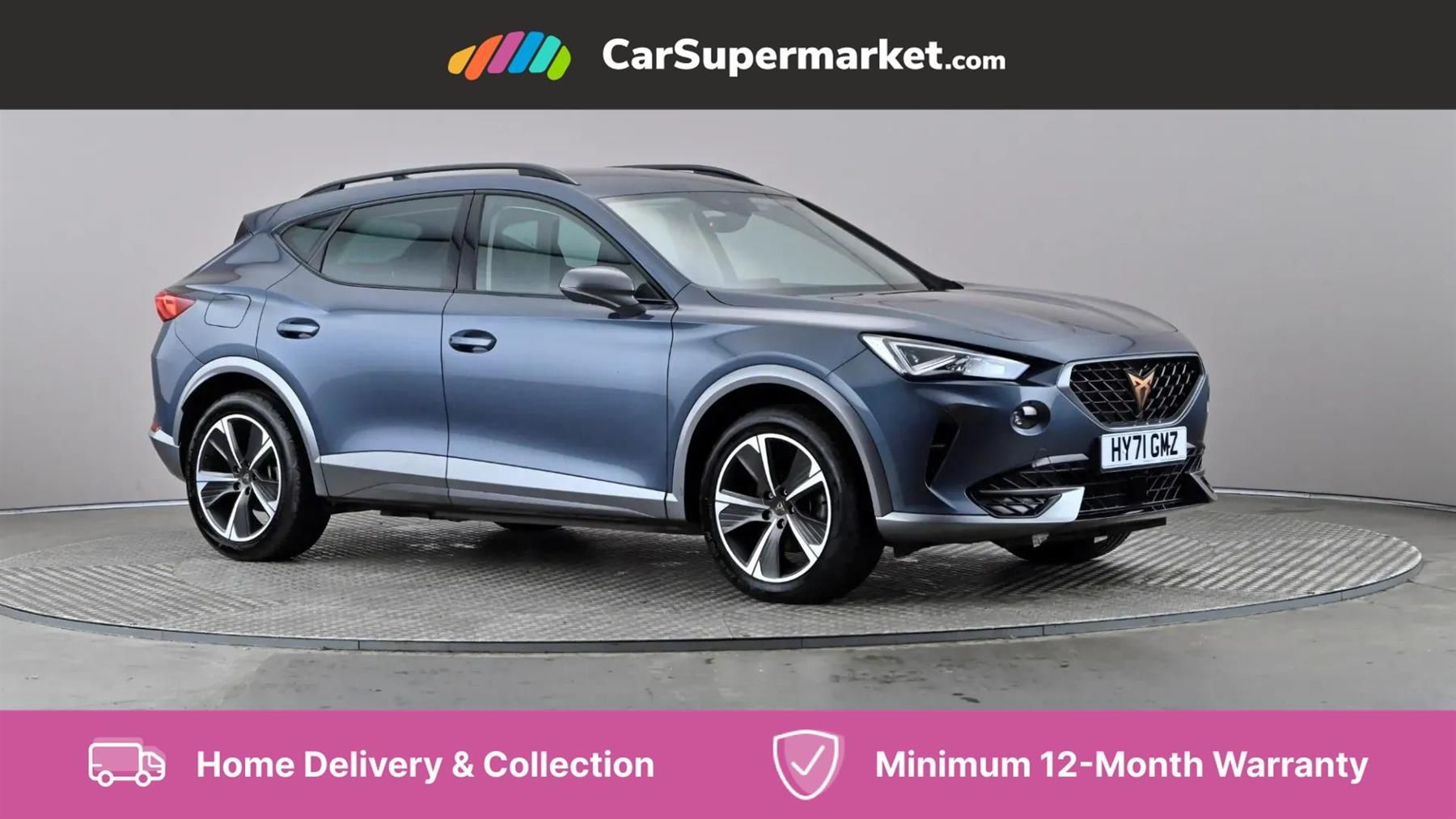 Digital Cockpit, Adaptive Cruise Control, Parking Sensors, Apple CarPlay, Wireless Phone Charging, Heated Steering Wheel, Sat Nav, Keyless Entry and Start;This is a 2021 Cupra Formentor. Whether you?re looking for efficiency on city streets or thrills on the open road, the Formentor offers an engaging driving experience with the added benefit of plug-in hybrid efficiency. Minimum 12-months warranty included with all our vehicles, as well as a no-quibble 15-day money back guarantee. Contact a member of our knowledgeable team for any help you need to find a financial package that suits you. When buying a vehicle with CarSupermarket.com, you can rest assured knowing that they're expertly prepared and valeted, HPI Clear, and with a minimum 6-month MOT and recent service. You can reserve your new vehicle for £199 and arrange to collect from one of our ten branches or 2 collection centres nationwide! Alternatively, you can have it delivered direct to your door with our home delivery service. If you have a vehicle to part exchange, CarSupermarket.com can value your current car in 30 seconds free of charge.