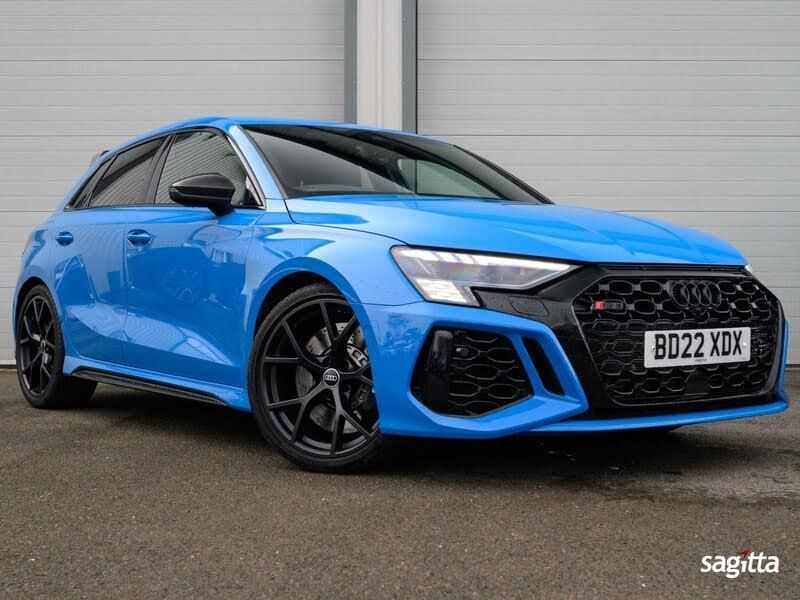 Sagitta is delighted to present for sale this stunning Audi RS3 Carbon Black Edition S Tronic in Turbo Blue with a Full Black Quilted Leather Interior, the car benefits from the following specifications, Satellite Navigation System, Reverse Camera, Bluetooth, Voice Control, Cruise Control, Apple Car Play, DAB Radio, Heated Front Seats, Virtual Cockpit, Lane Assist, Bang & Olufson Sound System, Multi-Function Flat Bottomed Steering Wheel, Paddle Shift, Parking Sensors, Electric Heated and Folding Mirrors, Privacy Glass, Rear Carbon Spoiler, 19in Alloy Wheels - 5-Y-Spoke-Matt Black, Black Styling Pack, Serviced at an Audi Specialist on the 16.02.2024 at 19,755 miles and the most recent service carried out on the 09.01.2025 at 28,514 miles, 2 Keys, car is under Audi Warranty till the 29.04.2025, More photos are available on our website, Part Exchange Welcome, all our cars come with a 6-month Warranty through Autoguard and 12 months of AA Roadside Assistance. Nationwide delivery is available, please contact us for a quote. Deposits can be taken over the phone. Payments can be made via bank transfer and Finance applications can be completed online. Whilst every effort is made to ensure the above details are correct there may be some discrepancies so please make sure to contact us for exact specifications and history on this vehicle.