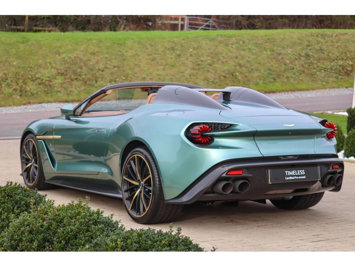 Aston Martin Bristol are proud to present for sale this exceptionally rare, Vanquish Zagato Speedster finished in the ultra rare Caplan Roadster Green alongside a Copper Tan Metallic leather interior. This stunning vehicle is number 16 of 28 ever produced and boasts many attractive features including Graduated Z Quilting, Full Length Herringbone Facia Trim, Shadow Bronze/ Anodised Gold Interior Finishers, Bronze Side Strake, Full Leather One77 Steering Wheel, Villa D'Este Pack and 15 Spoke Satin Black Bronze Tinted Diamond Turned Wheels. Not only does this vehicle go through our rigorous 140 point Timeless Inspection check to ensure it meets our high standards, it will also come with a 12 month Certified Timeless Warranty, 12 month Europe wide roadside assistance and a fresh MOT. For more details on this exemplary Vanquish Zagato Speedster, please reach out to a member of our specialised sales team here at Aston Martin Bristol.