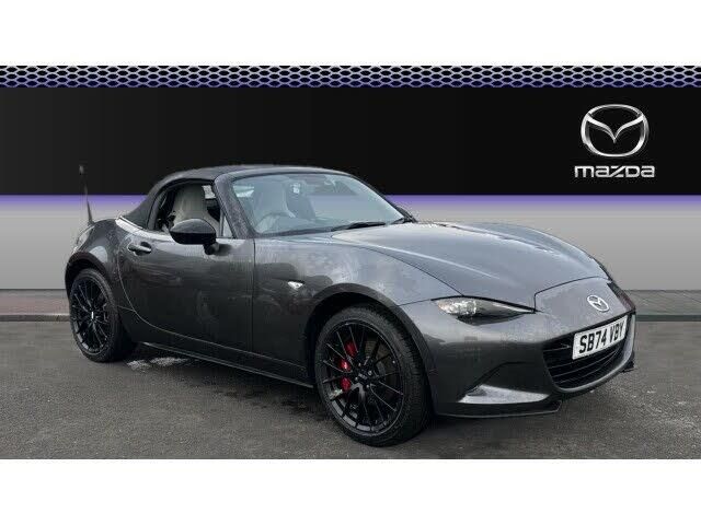 Introducing the stunning Mazda MX-5 2.0 [184] Homura 2dr Convertible, an icon of driving pleasure and unmatched elegance. Finished in Machine Grey Metallic Paint, this vehicle effortlessly blends sophistication with a sporty edge, ensuring you make an impression on every journey. Complementing the striking exterior is the Stone Leather Interior, offering luxurious comfort and premium craftsmanship that elevates the driving experience. With only delivery mileage on the clock, this vehicle is practically brand new and represents an incredible opportunity to own an iconic roadster at a fantastic saving against the new price. Backed as a Mazda Approved Used Vehicle, you can drive with peace of mind, knowing it meets Mazdas high standards of quality, reliability, and performance. Under the hood, the powerful 2.0L engine delivering 184PS promises exhilarating performance, while the precision-engineered chassis ensures responsive handling and pure driving joy. The convertible design lets you savor the open road in style, whether cruising city streets or winding country lanes. Packed with advanced features and state-of-the-art technology, the MX-5 Homura is designed to make every journey extraordinary. From its sleek design to its dynamic driving capabilities, this vehicle is built for enthusiasts who demand nothing less than excellence. Don't miss out on this rare opportunity to own a nearly-new Mazda MX-5 Homura at an unbeatable value. Visit today to experience the thrill for yourself!