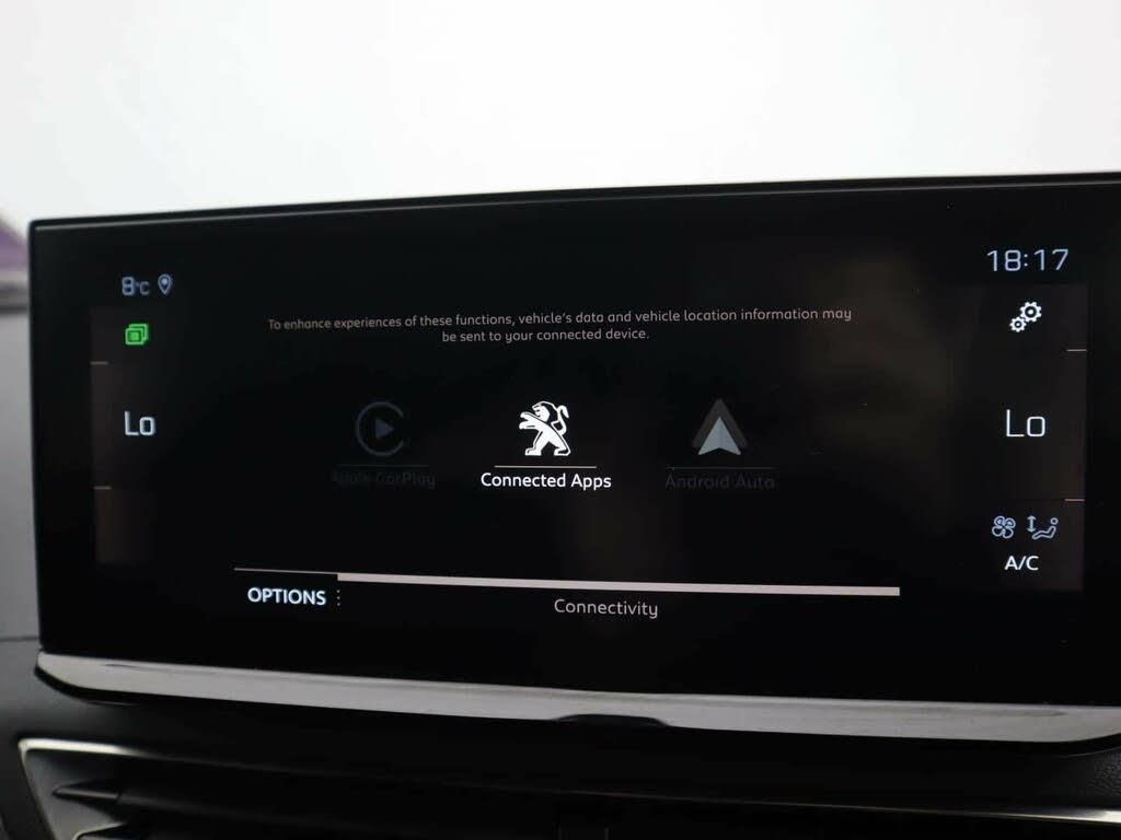 1-3 - 2-3 Folding Rear Seat,12V Sockets x3 - Dashboard - Rear Cabin and Load Area,180 Degree Colour Reversing Camera with Wash System,18in Alloy Wheels - Detroit - Gloss Onyx Black - Diamond Cut,3D Connected Navigation,6-Speaker Radio - MP3 Compatible,ABS - Anti-Lock Braking System with REF - Electronic Braking Distribution and AFU - Emergency Braking Assistance,Aikinite Contrast Stitching to Armrest - Gear Lever Gaiter and Dashboard Facia,Air Conditioning - Automatic Dual Zone Climate Control,Airbags - Adaptive Driver and Front Passenger,Airbags - Driver and Front Passenger Side,Airbags - Front and Rear Curtain,Alarm,Aluminium Longitudinal Roof Bars,Aluminium Pedals,Automatic Door Locking When Moving Off,Automatic Hazard Light Activation Upon Heavy Brake Application,Bi-Tuner Radio including DAB - Digital Radio,Blue Ambient Lighting for Connecting Zone,Blue Ambient Lighting to Front Door Panels and Cupholders,Blue Ambient Lighting to Head-Up Instrument Panel,Bluetooth Telephone Facility,Body Protectors in Black,Brumeo Fabric Trimmed Door Armrests,Central Front Armrest with Butterfly-Wing Opening and Illuminated Compartment,Chrome Window Line Trim,DSC - Dynamic Stability Control and ASR - Electronic Anti-Skid System,Dark Tinted Rear Side and Tailgate Windows,Dashboard Trim - Satin Chrome,Digital Instrument Panel Trim - Satin Chrome,Door Mirror Mounted LED Courtesy Approach Lights,Drive Assist Plus Pack,Driver Sport Pack,Driving Time Warning - DAA1,Electric Child Locking Functionality on Rear Windows and Doors,Electric Door Mirrors with Blind Spot Detection Indicator and Auto Dipping Function in Reverse Gear,Electric Parking Brake includes Hill Assist,Electric Power Steering with Reach and Rake Adjustable Steering Column,Electronic Code Immobiliser,Extended Traffic Sign Recognition,Exterior Door Handles - Body-Colour,Exterior Temperature Indicator with Ice Warning,Flocked Front Door Pocket Interior,Flocked Glove Box Interior,Fog Mode - LED Headlights Switch on Low Beam Headlights with Reduced Intensity when Rear Fog Lights are Activated,Footwell Lighting,Front Ambient Lighting,Front Central Console with Cup-Holder,Front Door Panel Recess Trim - Satin Chrome,Front Door Sills with Stainless Steel Insert Featuring PEUGEOT Lettering,Front Interior Light with Reading Spotlights x2 and Rear Interior Light with Reading Spotlights x2 - with Timer,Front Optimised Safety Headrests and Rear Retractable Headrests - x3 - Height-Adjustable,Front Radiator Grille - Dynamic - Frameless Design,Front Three-Point Retractable Seatbelts - Height-Adjustable with Pre-Tensioners and Force Limiters,Front Windscreen Wiper with Magic Wash Cleaning System,Front Wing Trim - Black with Chrome Detail,Front and Rear Door and Sill Protectors with Polished Stainless Steel Insert,Full LED Headlights with Static Cornering Lighting and Daytime Running Light Extension,GT Emblems - Front Wings and Tailgate,Gear Shift Indicator,Gloss Black B and C Pillar and Aerodynamic Deflector Trim,Gloss Black Front Bumper Air Scoops,Gloss Black Rear Cluster Connecting Strip,Gloss Black Windscreen Trim,Grab Handles x4 - Retractable - Damped,Headlights Left On Audible Warning,Heated Rear Windscreen with Integrated Antenna,Horn - Two Tone,ISOFIX Child Seat Fittings - x3 - In the Front Passenger and Outer Rear Seats,Illuminated Glove Box - Central Storage Area and Load Area,Illuminated Vanity Mirrors,Individual Left and Right Controls Located in Boot for Rear Seat Folding,Interior Door Handles - Satin Chrome,LED Daytime Running Lights - Saber Style with Integrated LED Indicators,LED Front Indicators,LED Interior Lighting,LED Rear Lights including Reversing Lights - Scrolling Indicators and PEUGEOT 3 Claw Effect Light Signature with Daylight Function,LED Rear Number Plate Lighting,LED Side Indicator Lights Integrated into Door Mirrors,Lane Departure Warning System,Lower Front Bumper - SIlver,Map Pockets on Front Seat Backs,Mirror Screen - Apple CarPlay and Android Auto,Mistral Black Floor Mats with Aikinite Contrast Stitching,Mistral Full-Grain Perforated Leather Steering Wheel with Aikinite Stitch Detail and Satin Chrome GT Line Emblem,Mode Selector,Multifunction Trip Computer,One-Touch Electric Front and Rear Windows with Pinch Protection,PEUGEOT Open and Go System,Parking Sensors - Front,Peugeot Connect SOS and Assistance,Peugeot i-Cockpit,Puncture Repair Kit including Compressor - Sealant Cartridge and Towing Eye,Rear Armrest with Ski Flap and Two Cup Holders,Rear Bench Seat with Central Armrest and Ski Hatch,Rear Bumper Facia - Chrome,Rear Centre Console Ventilation System,Rear Coat Hooks x2,Rear Parking Aid,Rear Passenger USB Charging Sockets x2 - Type A,Rear Spoiler - Body Colour with Stainless Steel Edging Trim,Rear Three-Point Retractable Seatbelts x3 - with Pre-Tensioners and Force Limiters in the Outer Rear Seats,Rear Windscreen Wiper Triggered Automatically in Reverse Gear,Remote Control Central Locking,Roof - Black Diamond,Roof Lining - Mistral Black,Scorpions Tail and Toggle Switch Trim - Satin Chrome,Seatbelt Unfastened on the Move Audible and Visual Alert for Front and Rear Seats,Seatbelt not Fastened Audible and Visual Alert for Front Seats,Seating - Driver Seat Manual Adjustment - Longitudinal and Back Rest Angle,Seating - Driver and Front Passenger Seat Height Adjustment,Seating - Front Passenger Seat - Flat Folding,Seating - Front Passenger Seat Manual Adjustment - Longitudinal and Back Rest Angle,Seats - Drivers Lumbar Support,Self Levelling Headlights,Speed Limit Recognition and Recommendation,Stainless Steel Door Sill Scuff Plates,Stainless Steel Roof Arch Trim,Twin Exhaust Effect Trim,Twin USB Charging Sockets - Rear Centre Console,Two-Position Boot Floor,USB Socket,Visibility Pack