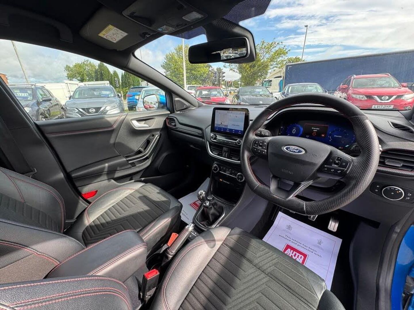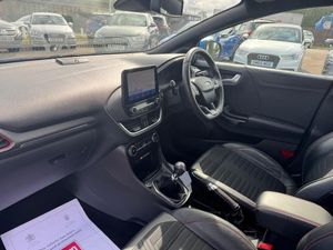 ++ COLOUR SCREEN SATELLITE NAVIGATION / PARKING CAMERA / BANG & OLUFSEN PREMIUM SOUND SYSTEM / DAB DIGITAL RADIO / FORD SYNC with BLUETOOTH INTERFACE + VOICE CONTROL / HALF LEATHER ST SPORTS SEATS with CONTRASTING RED STITCHING / CLIMATE CONTROL / QUICKCLEAR HEATED FRONT WINDSCREEN / STOP/START TECHNOLOGY / REAR PRIVACY GLASS / ST LINE BODYSTYLING / SPORTS SUSPENSION / Bi COLOUR DIAMOND CUT ALLOYS / FRONT and REAR PARKING SENSORS / LED HEADLIGHTS / ULEZ COMPLIANT NATIONALLY / FORD MAIN DEALER SERVICE HISTORY +FULL SERVICE PRIOR TO SALE / 1 FORMER KEEPER / 51459 MILES ++ 12 MONTHS MOT, COMPREHENSIVE PARTS and LABOUR WARRANTY, FREE 12 MONTHS AA BREAKDOWN COVER, CLEAR HPI CHECK, UK NATIONWIDE DELIVERY, NO ADMIN FEE'S, FANTASTIC VALUE GLASS'S GUIDE RETAIL PRICE £4595.00 ++ DAB Digital Radio / / Wireless Charging Pad + Audio Remote Controls + Bang & Olufsen Sound System + 10 Speakers, Driver and passenger + front and rear side + head airbags, Tyre pressure monitoring system, Thatcham category 1 alarm + Immobiliser, ESC - Electronic stability control, Hill Start Assist, Pre-collision assist with autonomous emergency braking, Electric heated folding door mirrors with puddle lamps, Large rear spoiler, Auto activated headlights, Rain sensor windscreen wipers, Auto high beam, Front fog lights with cornering lights, LED rear lights, Lumbar adjustment, Carbon look interior trim, Alloy sports pedals, Armrests, ST-Line black leather multifunction flat bottomed steering wheel, Select...More