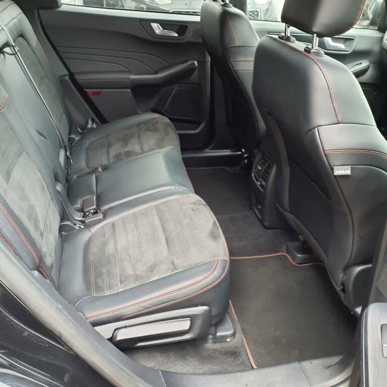 10-Way Power Adjustable Drivers Seat, 12v Power Point in Cargo Area, 12V Power Point in Floor Console, 12v Socket - Voltage Regulator, 18in Alloy Wheels - 10 Spoke - Rock Metallic, 2nd Row Sliding Seats, 8-Way Manual Passenger Seat including Lumbar Support and Height Adjust, ABS - Anti-Lock Braking System with Enhanced Electronic Stability Control - ESC with Traction Control - Emergency Brake Assist - EBA - Hill Start Assist - Trailer Sway Control, Agate Black, Air Conditioning - Electronic Automatic Temperature Control - EATC, Airbag - Driver and Front Passenger Side, Airbag - Front Passenger Deactivation Switch, Airbags - Driver and Front Passenger, Airbags - Front and Rear Side Curtain, Aluminium - Finish Front Scuff Plates with ST-Line Script, Aluminium Foot Pedals - ST-Line Design, Ambient Lighting, Auto Dimming Rear View Mirror, Auto Wipers, Automatic Door Relocking, Automatic Headlights with Auto High-Low Beam, Black Roof Rails, Centre Console with Electronic Parking Brake, Cruise Control with Intelligent Speed Limiter, Driver and Passengers Sun Visor with Illumination, Dual Exhaust Tailpipes with Unique Brushed Stainless Steel Finish, eCall, Electric Childproof Locks on Rear Doors, Electric Parking Brake with Auto Hold, Electrical Charging Point in Second Row, Engine Immobiliser - SecuriLock, EPAS - Electric Power Assisted Steering, Exterior Door Handles - Body Coloured, Ford Easy Fuel System, Ford Keyfree System - Keyless Entry with Ford Power Starter Button, Ford SYNC3 DAB Navigation System, Front and Rear Bumper - Sporty Body Colour with Rear Ebony High-Gloss Insert, Front and Rear Floor Mats with Red Stitching, Front and Rear Parking Sensors, Front Lower Grille - Ebony Black Mesh, Front Seats - 2-Way Manual Height Adjust Passive Head Restraints, Front Seats - Drivers and Passengers Seatback Map Pockets, Front Upper Grille - Carbon Black Honeycombe Mesh and High-Gloss Black Surround, Front Windows - Laminated Glass, Full Digital 12.3in Instrument Cluster, Full LED Headlamps, Gearshift - Automatic - Electronic Rotary Gearshift Dial, Glovebox Lights, Handsfree Power Tailgate, Headlights - Automatic Follow Me Home Lighting, Headlights - Levelling System - Manual, Headlights - Unique Bending, Headliner - Sports Dark, Heated and Power Folding Door Mirrors with Puddle Lights, High-Mounted Brake Light, Kuga Badge, Lane Keeping Aid with Lane Departure Warning, Large Rear Spoiler, LED Daytime Running Lights, LED Fog Lights - Front, Load Compartment - Lights, Load Compartment - Tie Down Hooks, Load Compartment Carpet, Locking Wheel Nuts, Lower Bodyside Moulding - Body Colour, Lower Door Frame Beltline - Black, Mini Overhead Console with Sunglasses Holder Bin, MyKey, Partial Sensico - Rapton Cloth - Ebony with Red Stitching, Power Door Deadlocks - Double Locking, Power Door Locks, Pre-Collision Assist with Autonomous Emergency Braking - Camera Detection, Privacy Glass, Quickclear Heated Windscreen, Rear Duct on B-Pillar, Rear Lights - LED, Rear Seat - 60-40 Split Folding Seats, Rear Seat Centre Head Restraint, Rear Seats - 2-Way Head Restraint Up-Down, Rear Seats - Folding Centre Armrest with Integrated Cup Holder, Rear Seats - Sliding Seat Adjust Tracks - Fore-Aft, Rear View Camera, Red Brake Calipers, Remote Tailgate Release, Removable Package Tray, Rocker Panel Mouldings - Body Colour - ST-Line Design, Seat Belt - Drivers - Front Passenger and Rear Seat Belt Reminder Alert, Seat Belts - Front 3-Point Seatbelts with Load Limiter, Seat Belts - Front Height Adjustable, Seat Belts - Rear Retractable Rear Belt - 3-Point All Positions, Seats - ISOFIX Mounting Provision for Child Seats - Outer Seats Only, Selectable Drive Modes, Single Rear Fog Light, Sports Seats, ST-Line Badge on Left and Right Side Wings, ST-Line Bodystyling Kit, ST-Line Front and Rear Bumper Moulding - Body Colour, Steering Column - Locking Electric, Steering Column - Rake and Reach Adjustment, Steering Wheel - ST-Line Sports-Style Perforated Sensico-Trimmed with Red Stitching, Suspension - Sports, Tailgate Handle - Body Colour, Tether Anchorage - Two Rear Seat Top Tether Anchorage Restraints, Thatcham Category 1 Perimeter and Volume Sensing Alarm, Tow Hooks - Front and Rear, Trip Computer, Tyre Inflation Kit, Tyre Pressure Monitoring System, Upper Door Frame Beltline - Black, Windows - Power Front and Rear with Global Closing, Wiper - Intermittent Rear Window Wiper, Wrong Way Alert, CAT N
