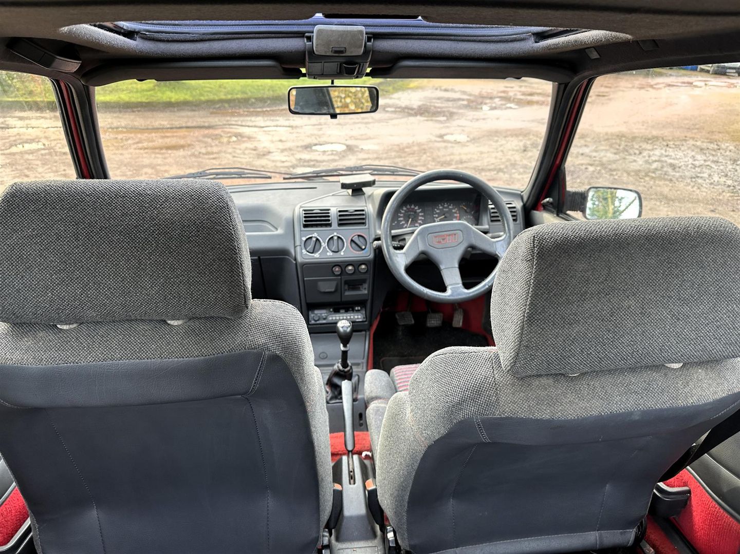 As a 1.6, there’s no power steering as it’s not necessary, and on this one, manual windows and no central locking. Apart from the factory sunroof, which works as it should in that you can feel the seal releasing, and the correct alloys. it’s as basic as it should be, and completely standard with the exception of a) the full-width reflective tail panel and b) a 1990’s style alarm system which was put in at some point in the dim and distant, and which we haven’t tried to use. Even the rear parcel shelf hasn’t been cut about.