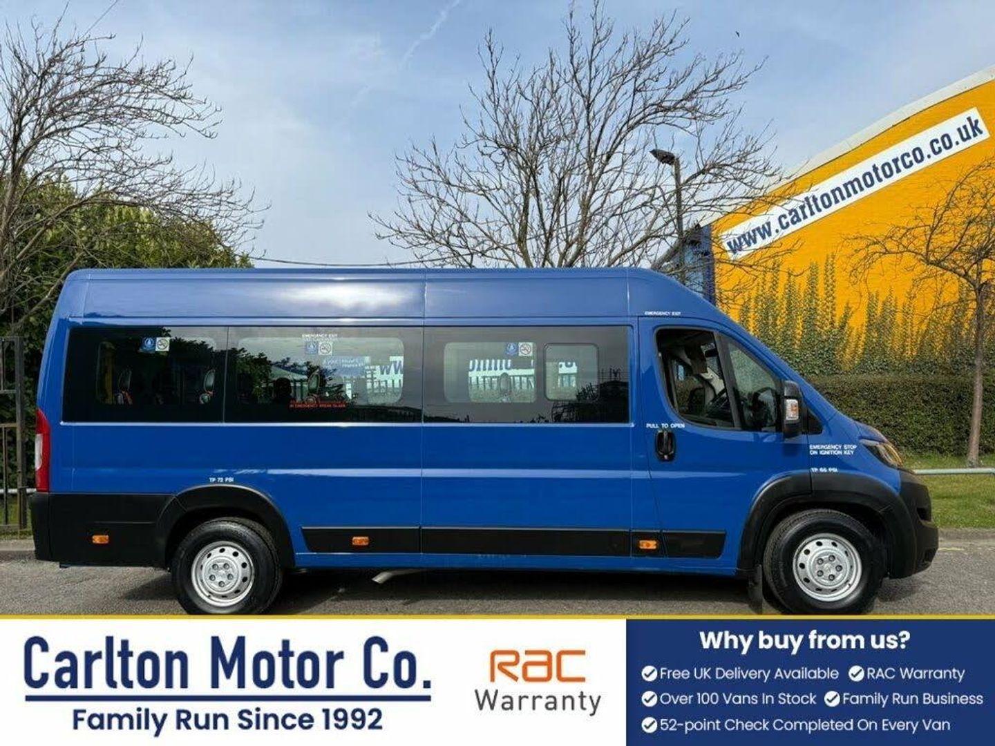 'Peugeot Boxer 2.2 HDI 440 L4 H2 MINIBUS 17 Seat [ WAV ] WHEELCHAIR ADAPTED Ex Authority School bus Digital tachograph Light use removable High back easy clean seats fabric non slip flooring ,pas twin air bags electric windows / mirrors DAB radio rear barn doors ## AWAITING PREPARATION ## We have one of the best selections Commercial vehicles around 100+ in stock, All our vehicles are prepared to the highest standards, Pre-Delivery inspection, Mot / Oil & filter if required, RAC warranty available on all vans. Full dealer facilities Low rate finance available, Also offer Free UK Delivery T&C Apply please check with our team. [ We are family owned and run since 1992 ] + VAT We only got bigger by been better- Leaders not followers, Every effort has been made to ensure the accuracy of the above information but errors may occur. Please check with our team, Telephone 01325 256060 / 488121 or email us on info@carltonmotorco.co.uk