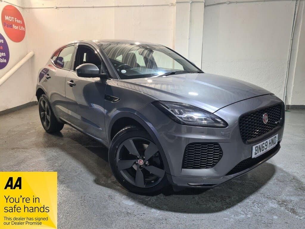 Corris Grey, 10-Way Heated Electric Front Seats, 10in Touch Pro, 19in Alloy Wheels - 5 Spoke Satin Dark Grey Finish - Style 5049, 2-Zone Climate Control, 3-Flash Lane Change Indicators, 60-40 Split Fold Rear Seat, ABS - Anti-locking Braking System, AM-FM Radio, ASPC - All Surface Progress Control, Airbags - Front Side, Airbags - Full Length Side Window Curtain, Android Auto, Apple CarPlay, Approach Illumination, Auto-Dimming - Power Fold - Heated Door Mirrors with Approach Lights, Auto-Dimming Interior Rear View Mirror, Automatic Headlights, Black Exterior Pack, Black Gearshift Paddles, Bluetooth Connectivity, Body Coloured Roof, Body-Coloured Door Claddings, Bright Metal Pedals, Carpet Mats, Centre Console with Armrest, Chequered Flag Badge, Connect Pro Pack, Cruise Control with Speed Limiter, Customer Configurable Autolock, D180 AWD Badge, DAB Radio, Diesel Misfuelling Protection Device, Driver Condition Monitor, Dynamic Stability Control - DSC, Dynamic Volume Control, E-PACE Badge, EBA - Emergency Brake Assist, EBD - Electronic Brake-Force Distribution, ECO Driving Style Assistant, EPAS - Electric Power Assisted Steering, EPB - Electric Parking Brake, Ebony Morzine Headlining, Efficient Driveline, Electric Windows - Front and Rear with One-Touch Open-Close and Anti-Trap, Emergency Braking, Fixed Panoramic Roof, Front Airbags with Passenger Seat Occupant Detector, Front Fog Lights, Front and Rear Parking Aid, Heated Front Windscreen, Heated Rear Window, Heated Washer Jets, Hill Launch Assist, Interactive Driver Display, Interior Lighting, Intrusion Sensor, Jaguar Script and Leaper, JaguarDrive Control, Keyless Entry, LED Headlights with Signature Daytime Running Lights, Lane Keep Assist, Loadspace Cover, Loadspace Elasticated Side-Strap, Loadspace Lighting, Loadspace Storage Net, Locking Wheel Nuts, Low Friction Launch, Luggage Tie Downs in Loadspace, Metal Treadplates with Chequered Flag Branding, Navigation Pro System, Outside Temperature Gauge, Overhead Lighting Console, Passive Front Head Restraints, Passive Suspension, Power Operated Child Locks, Power Sockets, Power Tailgate-Boot Lid, Pro Services and Wi-Fi Hotspot, Push Button Start, R-Dynamic Body-Coloured Bumpers, R-Dynamic Branded Leather Steering Wheel, Rain Sensing Windscreen Wipers, Rear Air Vents, Rear Bench Seat - 3 Seats, Rear Centre Headrest, Rear Fog Lights, Rear ISOFIX, Rear View Camera, Remote, Seat Belt Reminder, Smart Settings, Smartphone Pack, Sound System - 125W, Speed Proportional Steering, Start Up Sequence with Movement - Dials and Lighting, Summer Tyres, Sunvisors with Illuminated Vanity Mirrors, Tailgate Spoiler, Torque Vectoring by Braking - TVBB, Traffic Sign Recognition with Adaptive Speed Limiter, Trip Computer, Twin Front Cupholders, Twin Tailpipes with Finishers, Tyre Pressure Monitoring System, Tyre Repair System, Voice Control, x4 Hooks in Loadspace