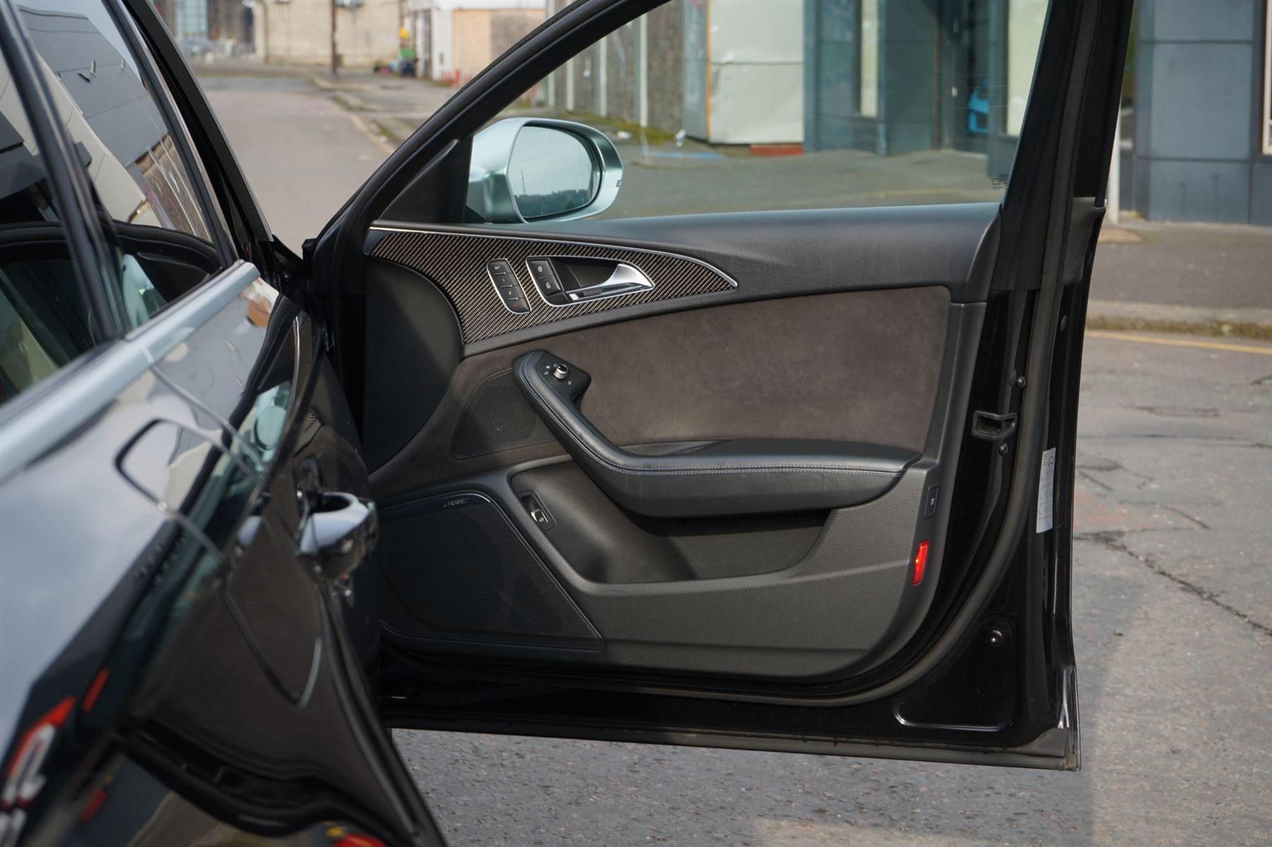 Stunning RS6 Performance Finished In Panther Black Crystal Paint With Black Honeycomb Quilted Alcatara and Leather Interior. Fantastic Spec Inc: Head Up Display, Panoramic Glass Sunroof, Parking Pack Advanced, Surround Cameras, Auto Park Assist, Red RS Brake Calipers, Carbon Fibre Inlays, 21'' V Star Spoke RS6 Performance Alloy Wheels In Black, Matt Aluminium Styling Package, RS Sports Exhaust System, Rear Sun Blinds, Through Load, Electric and Heated Super Sports Seats With Driver Memory, Blue Stitching, Matrix LED Lights, Dynamic Front and Rear Indicators, Large Front Spoiler, Front & Rear Parking Sensors, MMI Navigation Plus, Audi Connect, Bluetooth Phone Prep, MMI Touch, DAB Radio, DVD Player, SD Card, Electric Folding Mirrors With Memory, Privacy Glass, Colour Drivers Information System, Anti Glare Interior Mirror, Hill Hold Assist, Rain Sensor, Deluxe Automatic A/C, Computer. This RS6 Comes With Full Audi Service History and Extended Audi Warranty.