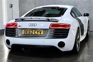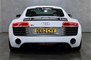 19in Alloy Wheels - 5-Arm Double Spoke Y Design High Gloss Finish, 6.5in Display Screen, ABS - Anti-Lock Braking System, Airbags - Driver, Airbags - Front Passenger, Airbags - Front Side, Aluminium-Look Pedals and Footrest, AMI - Audi Music Interface, Amplifier - 5-Channel, Anti Theft Locking Wheel Bolts, Anti-Theft Alarm, ASR - Anti Slip Regulation, Audi Hill Hold Assist, Audi R8 Driving Experience - Initial Owner Only, Auto-Dimming Rear-View Mirror, Automatic Wipers with Rain Sensor, AUX-IN Socket, Brake Lights - LED, Ceramic Brakes, Climate Control - Electronic, Concert Radio RNS-E - MP3-CD Player, Cornering Light Function, Cup Holders - x2 in Centre Console, Door Mirrors - Carbon Sigma Housing, Door Mirrors - Electrically Adjustable and Heated, Door Sill Trims - Aluminium with R8 Logo, Drivers Information System - DIS, EDL - Electronic Differential Lock, Electric Windows - Front, Electrically Adjustable 4-Way Lumbar Support, Engine Bay Trim - Carbon Sigma, ESP - Electronic Stability Programme, Exhaust Tailpipe - Dual-Branch, First Aid Kit, Front Passenger Airbag Deactivation Switch, Gear Knob - Aluminium, Glovebox - Lockable, Heated Engine Partition Window, Heated Front Seats, Immobiliser, Inlays - Carbon Sigma, Interior and instrument lighting, LED Headlights, Light Package, Lights in Footwell - LED, Mobile Telephone Preparation - Bluetooth Interface with Microphones, Power Steering - Servotronic, Remote Central Locking, Roof Lining - Black, Satellite Navigation System - DVD-Based, SD Card Slots x2 - MMC, Seat Belt Reminder, Seats - Front Electric Adjustment, Sideblades - Carbon Sigma, Speakers x7, Spoiler - Front Lip - Carbon Sigma, Spoiler - Retractable, Steering Wheel - 3-Spoke Leather-Multifunction-Flat Bottomed-Shift Paddles, Steering Wheel - Multi-function, Storage Tray with 3 Cup Holders Between Rear Passenger Seats, Sun Visors - with Vanity Mirror, Suspension - V10 Plus, Tool Kit, Tracking Preparation, Traction Control, Two-Piece R8 Luggage Set with Contrast Stitching, Tyre Pressure Monitoring System, Tyre Repair Kit, V10 Badges on Front Wings, Voice Control - Navigation, Warning Triangle