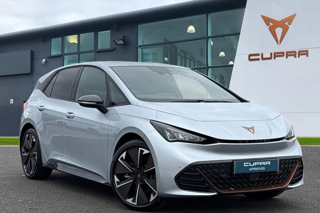 Acoustic windshield,Dark tinted rear windows,Heat insulated glass,Rear wiper,Variable intermittent wiper,Windshield wiper with light/rain sensor,Shock absorption in front,Sports rear shock absorption,Exterior VZ lettering,Rear side wing doors,Transport protection film,Full LED headlights,LED 3rd brake light,LED daytime running lights,LED rear lights,Welcome home function and adverse weather function,Bluetooth,Wireless full link smartphone integration,2x USB sockets in front,2x USB sockets in rear,charge only,DAB (Digital Audio Broadcasting) and AM/FM radio,Sennheiser premium audio,Driving profile selection - Range,Comfort,Performance,CUPRA Individual,Dynamic steering,Forward collision warning with automatic braking,Lane assist,Auto dimming rear view mirror,Electric adjustable/heated/folding door mirrors,Grey exterior mirrors,3 point seatbelts on all rear seats,Attention and drowsiness assist,Driver and front passenger airbags with front passenger airbag deactivation,side airbag in front with curtain airbag and front interaction airbag,Extended safety system with proactive passenger protection system,Tyre pressure monitoring system,Visual and acoustic seat belt reminder,Tailgate,5.3" digital cockpit with 12.9" central display infotainment system,Augmented reality head up display,e-call service,Emergency steering support with turn assist,Right hand drive vehicle,Voice assistant,Dual zone climatronic air conditioning,Electric auxiliary air heater,Aluminium pedals,CUPRA emblem on steering wheel,Heated leather wrapped multi function steering wheel with satellite buttons,Microsuede upholstery,Tool kit with tirefit,Interior smart light,Gear ratio 7915,Sunvisors with illuminated mirror,Dynamic pack - Born,3 seat bench in 2nd row,CUP Bucket seats with power seat adjustment,lumbar support and memory feature,Heated front seats,Integrated front head restraints,ISOFIX points in outer rear seats with top tether anchorage points,Rear headrests,Single front passenger seat,Unsplit rear seat bench,split folding backrest,with centre armrest,Anti theft alarm system with interior monitoring in cab,backup horn and towing protection,Anti theft wheel bolts,Keyless go central locking system,Manual child locks,Preparation for alcohol interlock,Warranty - 5 Years/90,000 miles,11 kW onboard charger,185kW DC charging capacity,Charging cable mode 3,type 2/3 32 A,Tyre repair kit