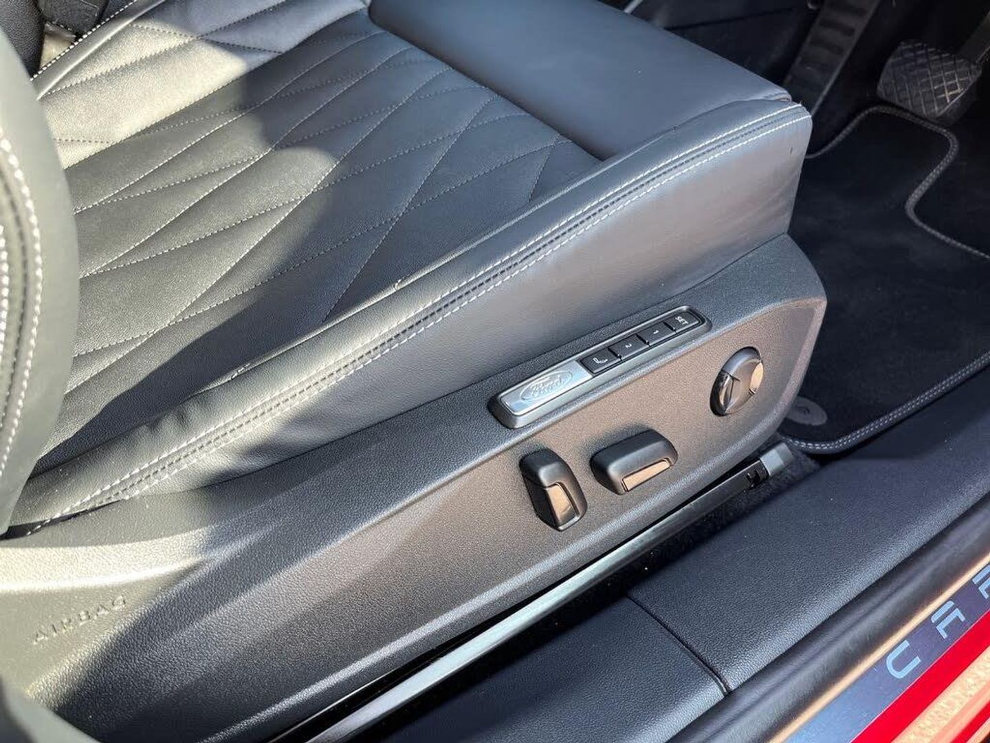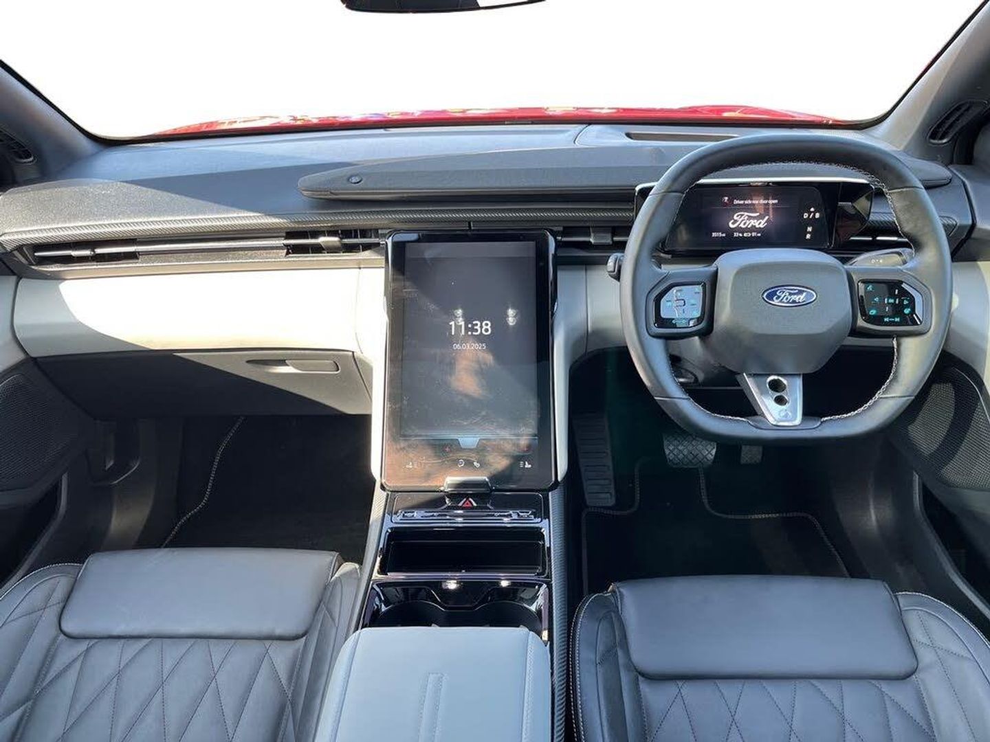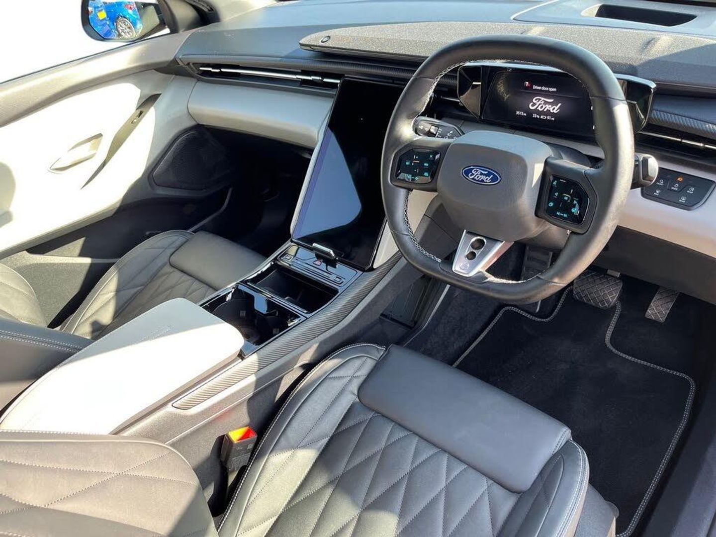 12-Way Power Driver Seat with Memory 14.6in Touchscreen with SYNC Move 20in Alloy Wheels - Aero - Magnetic - Bright Machined 5.3in Full Digital Cluster Screen 6-Way Manual Passenger Seat ABS - Anti-lock Braking System Airbag - Front Passenger Blue Oval Charge Network Access - Lifetime Access Door Mirrors - Heated - Power - Foldable with Logo Puddle Lamps and Memory Function Drivers Airbag Dual Zone Electronic Automatic Temperature Control - DEATC Electric Windows - Front and Rear Front Door Scuff Plates Front and Rear Parking Sensors Hands-free Power-operated Tailgate Heated Driver and Passenger Seats with Massage Function IONITY Charging Access - 1 Year Trial Intelligent Adaptive Cruise Control with Stop-Go Keyless Entry-Start LED Ambient Lighting LED Taillamps with Ford Lettering and Coast-to-Coast Applique Lane Keeping Aid with Lane Departure Warning Matrix LED Headlamps with Automatic High-Low Headlamp and Glare-Free Function Panoramic Roof Power Steering Pre-Conditioning - Battery and Cabin Premium 10-Speaker B&O Sound System Rear Privacy Glass Rear View Camera Selectable Drive Modes Thatcham Alarm Traffic Sign Recognition with Navigation with Wrong Way Alert