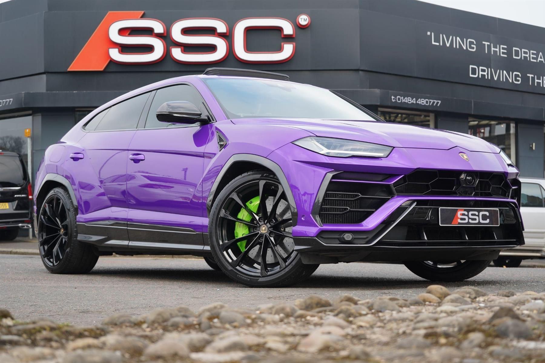 Stunning Urus V8 SUV Finished In Ad Personam Viola Pasifae With Nero Ade and Bianco Leda Bicolor Sportivo Leather. Fantastic Spec Inc: Front End Paint Protection Film, Shadow Tracker and Immobiliser, Panoramic Sunroof, Ad Personam Exterior Details, Lamborghini Frame In Carbon Fibre Shiny, Mirror Housing In Carbon Shiny, Rear Spoiler In Carbon Shiny, Big Interior Carbon Pack, Carbon Twill Inserts, Full Electric and Ventilated Front Seats With Massage and Memory, Heated Rear Seats, Style Pack In High Gloss Black, 23'' Taigete Rims In Shiny Black, Green Calipers, Ceramic Brakes, Q-Citura on Leather, Optional Stitching, Heated Steering Wheel With Perforated Leather Inserts, Optional Stitching On Steering Wheel, Black Chrome Exhaust Tailpipes, Rear Diffuser In Shiny Black, Rocker Cover and Door Inserts In High Gloss Black, Alcantara Headliner, Embroidered Shield On Headrests, Black Anodised Treatment On Aluminium Inserts, Park Assistance Pack With Remote Park Assist, DAB Radio+payTV, Head Up Display, Vehicle Tracking System, Ambient Lighting Pack, Soft Close Doors. This Urus Comes With Remainder Of Manufacturers Warranty and Maintenance Plan. VAT QUALIFYING