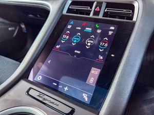 Centre console with direct touch control includes climate settings, opening and closing charge port doors, battery level indicator, handwriting panel