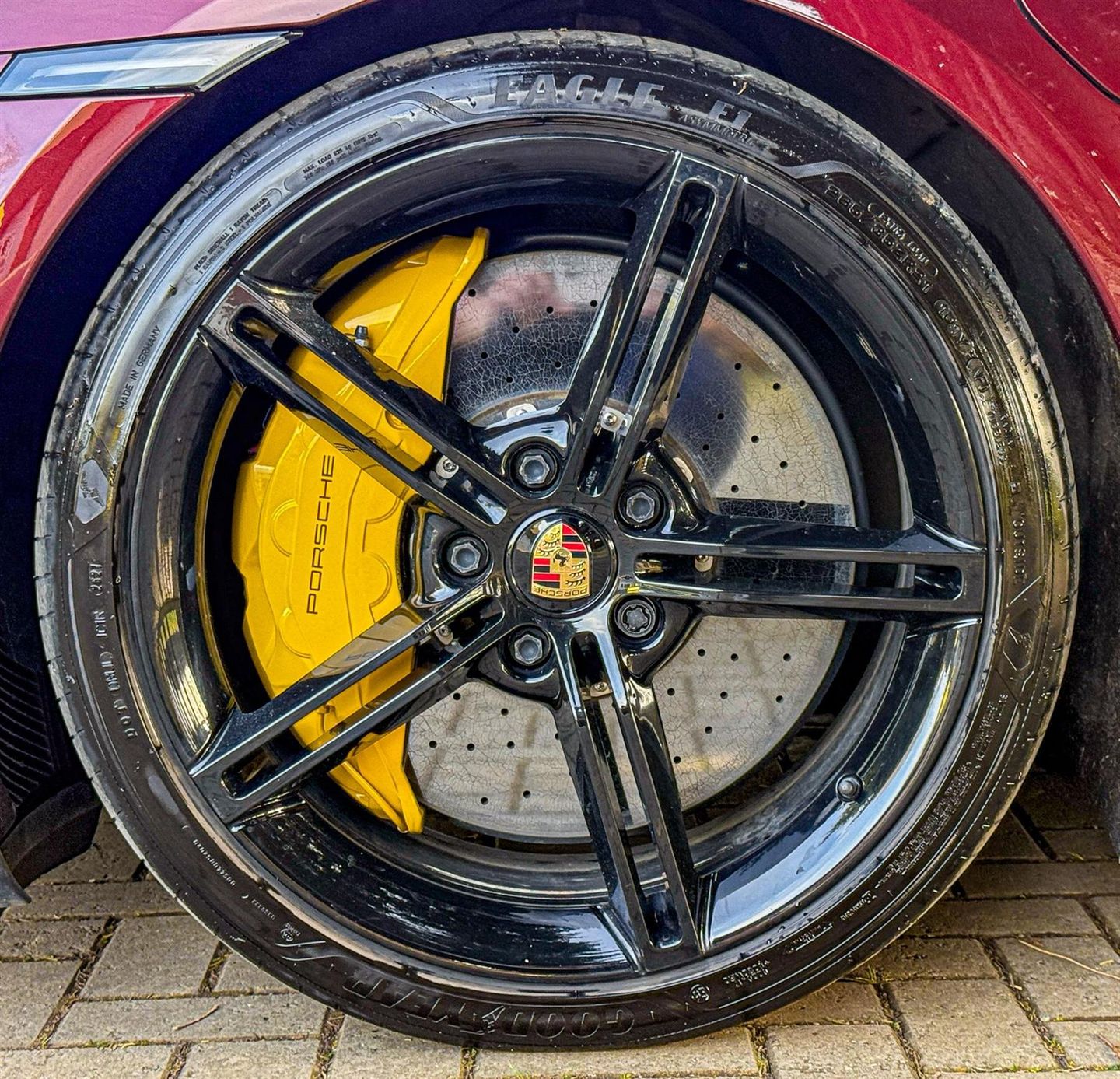 Porsche ceramic composite brake with internally vented brake discs with 420 mm at front and 410 mm at rear