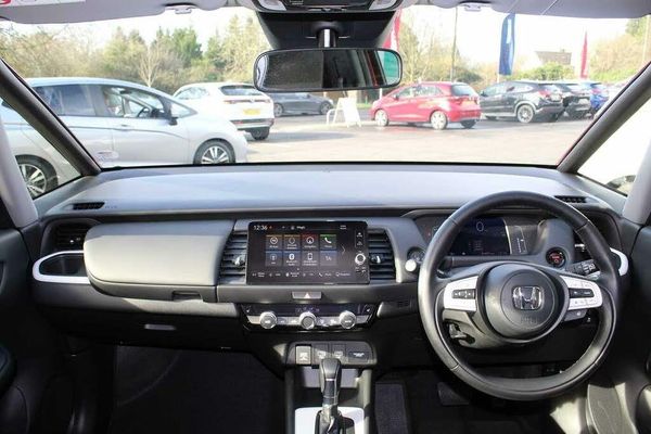 Auto wipers, Front and rear electric windows, Privacy glass, Rear wiper, Vehicle stability assist, Body colour door handles, eHEV emblem, Exclusive styling includes Front and rear bumper, Front fog garnish, Black fender, side sill garnish, Rear side wing doors, Roof rails, Single exhaust tailpipe, Automatic headlights with on/off timer, Coming/leaving home function, High beam assist, LED daytime running lights, LED front fog lights, LED Headlights, LED rear lights, Third brake light, Anti-lock braking system (ABS), Brake assist function, Brake hold function, Collision mitigation braking system, Electric parking brake, Hill start assist, Adaptive cruise control, Adjustable speed limiter, Agile handling assist, Electric power steering wheel with variable gear ratio steering, Emergency stop signalling system, Forward collision warning, Front and rear parking sensors, Idle stop, Intelligent speed limiter, Lane departure warning system, Lane keep assist system, Low speed following, Rear view camera, Road departure mitigation, Traffic sign recognition, Aspheric door mirrors, Electric adjustable door mirrors, Electrically folding door mirrors, Heated door mirrors, Silver door mirrors, 3x3 point rear seatbelts, Child locks on rear doors, Deflation warning system, Driver knee airbag, Driver SRS airbag (single stage inflation), Driver/Front Passenger airbags, Front and rear side curtain airbag, Front side airbags, Passenger SRS airbag cut-off device, Rear side airbags, Whiplash lessening front headrests, Bluetooth hands free telephone connection, eCall emergency call system, 'Shark fin' mobile antenna, 2 USB sockets in rear, 2x USB Front socket (1 data & 1 charge), Premium audio with 8 speakers, front tweeter, centre speaker, Remote audio controls on steering wheel, Subwoofer, Econ mode, Honda CONNECT with HERE Navigation + 9" touchscreen, AM/FM/DAB/Apple Carplay and android auto, Multi-information display, Soft pad mesh interior panels, 3 seat bench in 2nd row, 60/40 split rear bench seat, Driver's seat height adjustment, Front head restraints, Heated front seats, Isofix child seat restraint mechanism, Isofix points, Magic seat flexibility system, Rear head restraints, Single front passenger seat, Climate control air conditioning, Cargo net hooks, Driver and front passenger seat armrests, Driver and passenger front seat pockets, Fabric/Water repellent upholstery, Front accessory power socket, Leather gearshift knob, Leather steering wheel, Paddle shift controls, Plating interior door handles, Rear parcel shelf, Tilt/telescopic adjustable steering wheel, Tonneau cover, Front map lights, Front/rear courtesy lights, Trunk light, Sunvisors with vanity mirrors, Front seat belt with emergency locking retractor, Honda super locks, Immobiliser, Mirrors and windows key fob operation, Remote central locking with 2 remote folding keys, Security alarm, Smart entry + Smart start, 16" AL Crosstar alloy wheels in mat berlina black, Tyre repair kit