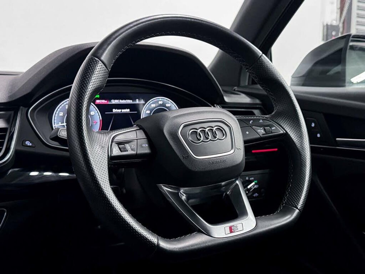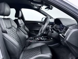 2 USB Charging Ports -1 x USB-A and 1 x USB-C Port, 20in Alloy Wheels - 8J 5-V Spoke Design Audi Sport in Gloss Anthracite Black - Diamond Cut, 3 Pin 10amp Domestic Charging Cable, 4-Way Electric Lumbar Support, 6-Airbag System, Amazon Alexa Integration, Anti Theft Locking Wheel Bolts, Anti-Theft Alarm, Artificial Leather Pack, Audi Beam with Audi Rings Logo, Audi Connect Navigation and Infotainment Services Plus - 3 Year Trial, Audi Connect with Amazon Alexa Integration, Audi Drive Select, Audi Pre-Sense City, Audi Rings Decal on Rear Doors, Audi Rings at Front and Rear in Black, Audi Virtual Cockpit Plus - 12.3in Screen and Three Different Layout Designs, Audi Wireless Smartphone Interface, Auto-Dimming Rear-View Mirror, Automatic Headlight Adjustment, Automatic Headlight and Windscreen Wiper Activation, Automatic Start-Stop with Coasting Functionality and Efficiency Programme, Black Door Mirrors, Black Roof Rails, Black Styling Package, Bluetooth Interface, Chrome-Plated Exhaust Trim, Cloth Headlining in Black, Comfort Front Centre Armrest - Height Adjustability and Slide Function, Contrast Stitching on Seats - Steering Wheel and Gear Lever Gaiter, Cruise Control System with Speed Limiter, DAB Digital Radio, Deluxe 3-Zone Electronic Climate Control, Door Mirrors - Electrically Folding and Heated and Auto Dimming, Door Side Sills in Carbon, Dynamic Suspension, ESC - Electronic Stabilisation Control inc ABS - ASR and EDL, Electric Child Locks for Rear Doors, Electric Windows - Front, Electrically Adjustable Front Seats, Electromechanical Parking Brake, Electromechanical Power Steering, Extended Interior Upholstery Pack, Extended LED Interior Lighting Package - Multi-Coloured, First Aid Kit and Warning Triangle, Flat-Bottomed 3-Spoke Leather High Multi-Function Steering Wheel, Front Air Inlet Surrounds in Aluminium, Front and Rear Brake Calipers - Painted Red, Front and Rear Floor Mats, Front and Rear Parking Sensor with Acoustic Warning, Gear Lever in Black Leather, Headlight Washers, Heated Front Seats, High Gloss Package, Hill Descent Control, Hill Hold Assist, ISOFIX Child Seat Mounting and Top Tether, Illuminated Door Sill Trims with S Logo, Inlays - Piano Finish - Black, Keyless Go, LED Interior Lighting Pack, Lower Bumper Painted in Contrast Manhattan Grey, MMI Navigation Plus with 10.1in Touchscreen, Matrix LED Headlights with Dynamic Front and Rear Indicators, Multi Collision Brake Assist, Pop-Up Bonnet for Pedestrian Protection, Power Operated Tailgate, Privacy Glass - Rear and Rear-Side Windows, Rear Bench Seat Plus, Rear Chrome Trim Strips Below Lights, Rear Spoiler, Reversing Camera, Roof Bars, S Line Front and Rear Bumpers, S Line Side Skirts, Seat Belt Monitoring, Steering Wheel - Gear Shift Paddles, Sun Visors - with Vanity Mirror, Tool Kit, Trunk Roller Cover, Type 2 Mode 3 32 Amp Charging cable, Type 2 Socket for AC Charging, Tyre Pressure Warning Light, Tyre Repair Kit, Underbody Protection in Body Colour, Voice Control System with Audi Hotword Activation - Hey Audi, Windscreen with Acoustic Glass, Without Model and Engine Badge at Rear, quattro On Demand, Fine Nappa Leather - Black with Rock Grey Stitching