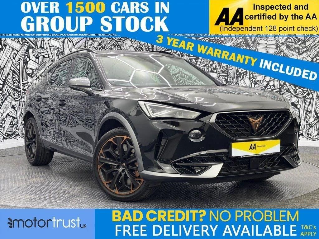 **2022 Cupra Formentor 2.0 TSI VZ3 SUV – Petrol Automatic – High-Performance and Luxurious** Introducing a bold and powerful 2022 Cupra Formentor 2.0 TSI VZ3 SUV, finished in striking black with a luxurious blue leather interior featuring copper stitching. This 5-door SUV combines high-performance engineering, advanced technology, and premium features, making it an ideal choice for those seeking a sporty yet luxurious driving experience. Powered by a 2.0-litre petrol engine paired with a DSG automatic transmission and 4Drive all-wheel drive, this Formentor delivers an impressive 310 PS while adhering to Euro 6 emissions standards. With a full-service history (2 services at 20,000-mile intervals), this vehicle has been meticulously maintained and is ready to deliver thrilling performance. The exterior features a sleek black finish, exuding sophistication and sportiness. Inside, the cabin is equipped with **blue leather upholstery and copper stitching**, creating a premium and dynamic atmosphere. Advanced features include a high-quality **satellite navigation system**, **Cupra Mode** for a customisable driving experience, and a **rear-view camera** for enhanced safety. The inclusion of **Android Auto and Apple CarPlay** ensures seamless connectivity, while the **power boot** and **heated seats** add convenience and comfort. This Cupra Formentor VZ3 is a perfect blend of performance, style, and luxury, offering a truly exhilarating ownership experience. Don't miss the opportunity to own this exceptional SUV. Contact us today to arrange a viewing or for more details. Welcome to MotorTrustUK, where exceptional standards and customer satisfaction are at the forefront of our service. All of our retail vehicles undergo a rigorous 128-point mechanical inspection, independently carried out by a qualified AA technician, to ensure the highest level of reliability and safety. Should any vehicle have less than six months remaining on its MOT or be due a service, these requirements will be addressed prior to delivery. . With approximately 1,500 vehicles currently in group stock, a number that continues to grow, we are pleased to offer part exchange services, accept all major credit and debit cards, and provide flexible finance options, including HP, PCP, and subprime solutions. Nationwide delivery can also be arranged by quotation. While every effort is made to ensure accuracy in vehicle specifications and descriptions, details may vary; we encourage all customers to speak with a member of our sales team to confirm key information such as MPG figures etc