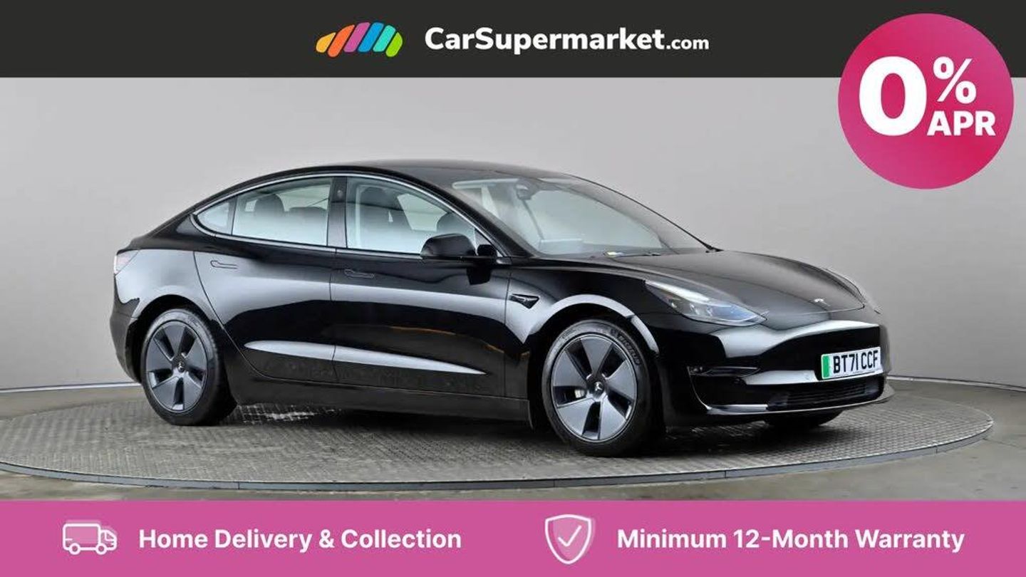 Adaptive Cruise Control, Blind Spot Monitoring, Lane Departure Warning, Sat Nav, Traffic Sign Recognition, 15" Touchscreen, Digital Radio, Bluetooth, Heated Front Seats, Heated Steering Wheel, Keyless Entry and Start, Wireless Phone Charging;This is a 2021 Tesla Model 3 Long Range, an all-electric car with four-wheel drive. This particular model has had only one previous owner. With a battery capacity of 78 kWh, this Model 3 Long Range offers a maximum range of 360 miles when new, meaning you can enjoy longer journeys with fewer stops to charge. When it is time to charge, you can fully charge at home in 12 hours using a 7kW charger. For faster charging on the go, you can achieve an empty to 80% charge in just 26 minutes using a rapid public charger. The generous boot space of 542 litres means that you don't have to compromise on luggage capacity. Furthermore, the car's roadworthiness is guaranteed with an MOT valid until December 2025.