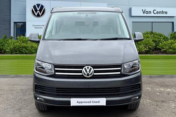 Awning rail in black,Metallic paint,Front and rear parking sensors with rear parking camera,Composition media system with 6.33" touchscreen,AppConnect,Metallic - Indium grey,17" Devonport alloy wheels,Glazed tailgate,Green insulating glass in storage/passenger compartment,Intermittent windscreen wipers,Rear wash/wipe,Side sliding windows,Body colour bumpers,Body colour door mirrors and handles,Body coloured aluminium electrically pop-up roof with two side windows and one front window,Power latching sliding driver's door,Roof rack preparation,Roof rails,Front fog lights with static cornering function,LED tail lights,Range adjustable headlights,Brake assist function,ESP,Hill hold control,Driver alert system,Auto dimming rear view mirror,Electric adjustable/heated/folding door mirrors,Child proof door locks,Door open warning,Driver seatbelt warning indicator,Driver/Front Passenger airbags,Driver/front passenger seatbelt tensioners,Passenger airbag deactivation system,Two tone horn,Tyre pressure warning,Warning triangle and first aid kit,Passenger floor covering in Moonrock grey,3 zone climate control,Auxiliary heater,Independent rear heating controls,Parking heater with programmable timer and remote control,230V socket,Camping table with two folding chairs,Centre console,Cool/warm box,Front door storage bins with bottle holder,Front seat armrests,Height/reach adjust steering wheel,Interior illuminated entry steps,Jack and tool kit,Leather gear knob/gaiter,Leather steering wheel,Storage net on lower dash passenger side,Adjustable dashboard illumination,Sunvisors with illuminated vanity mirrors,Lockable tailgate,Tailgate power closing,Digital clock,External temperature gauge,Low washer fluid indicator,Service interval indicator,Trip computer,180A alternator,2x Auxiliary rechargable batteries,DAB Digital radio,Radio/CD + MP3,Smoking pack - California,Front seat backrest storage nets,Head restraints for all seats,Heated front seats,Preparation for separate seat in passenger compartment,Alarm with interior protection,Electronic immobiliser,Locking wheel nuts,Remote central locking,215/65 R17 tyres with optimised rolling resistance,Wheel covers,Power windows,ABS/EBD,EDL,Front side airbags with curtain airbags,Dust/pollen filters,Front grab handles,Rev counter,Auxiliary input socket,USB port,ISOFIX top tethers and lower anchor points,Swivelling front seats
