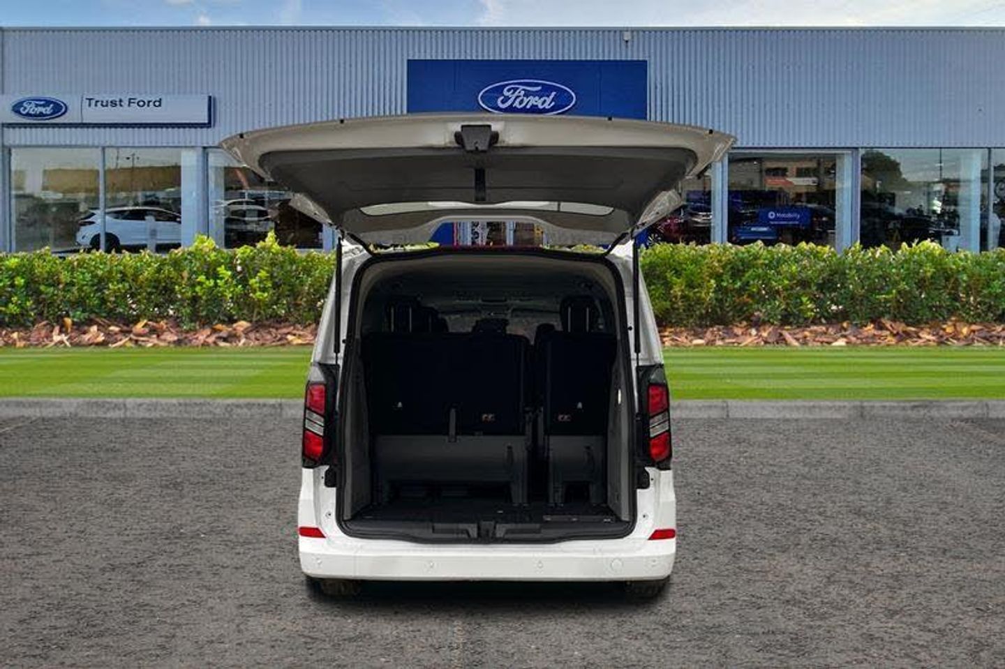 REAR VIEW CAMERA shows whats behind you on a screen in front of you on the dashboard - the system activates when you select reverse gear and using virtual guidelines can help you park, FRONT AND REAR PARKING SENSORS are designed to help you park more confidently helping you judge the distance between your vehicle and obstacles both in front and behind you, CRUISE CONTROL provides extra comfort on longer journeys allowing you take your foot off the acceleration whilst just focusing on steering the vehicle, BLUETOOTH HANDS FREE WITH VOICE CONTROL allows you to operate both your mobile phone and Ford audio system - controlling several functions using a set list of simple voice commands, Remote central locking, Driver's airbag, Full moulded headlining, PAS, Alternator - 150A, Electronic Stability Programme, Trip computer, Height adjustable head restraints, 3 point seatbelts for all seats, Map reading lights, Leather gearknob, Heated door mirrors, Tool kit, Voice control system, Audio controls mounted on steering wheel, Front seatbelt pretensioners, Coat hook, Speed sign recognition, Body coloured exterior mirrors, Tyre pressure monitor, Passenger airbag with deactivation switch, Rear reading light, Battery saver, Twin bottle holders, Front door map pockets, Passengers side open storage, Facia mounted tray with pen holder and cupholders, 3rd Row left and right fixed windows, Power socket in drivers stowage bin, Driver and passenger storage bins on facia with lids, Automatic windscreen wipers, Illuminated footwell, Diesel particulate filter, Isofix child seat attachments - centre and offside 2nd row seats, Rear auxilliary power point socket, Aux input socket, Daytime running lights, Passenger sunvisor, Rear armrest, Low roof line, Reclining rear seats, Front and rear parking aids, Blind spot assist, Roll stability control, Side wind mitigation, Intelligent Speed Assist, 20L AdBlue tank, Thatcham category 1 alarm with power door deadlocks, 16 Steel spare wheel, Body colour front bumper, Body colour rear bumpers, Rear power point plug, Rear splash guard, Power front windows with one shot up/down, Lockable glove box lid, Anti-lock brake system, 2 remote keys, Lane keeping aid includes lane keeping alert, Fixed rear window, Pre collision assist, Header courtesy lights, Driver and passenger seatbelt reminder, Black seat belt, Rear cargo liftgate door, Two step door unlock system, Locking wheel lug nut, 2 Load compartment tie down loops, Stolen vehicle recovery system, Front splash guard, LED load compartment lighting, Quick clear front windshield defroster, Rear window defroster, SYNC 4 - Android Auto/Apple Car Play, advance speech recognition, over the air update capability, 13 Touchscreen, 5G embedded modem, Wrong way alert, Sun blinds, Comfort seat, Locking configuration 2, Alcohol interlock, Speed dependant locking, Medium duty towing, Interior grab handles with driver's sunglasses holder, Non-swivel driver seat, Non-swivel passenger seat, Rear USB 3 port for charging, Fixed LED headlamps with auto high headlamp, Rear washer/wiper, SHORT WHEEL BASE, ULEZ COMPLIANT, Minibus, EURO 6, CAMERA, ULEZ