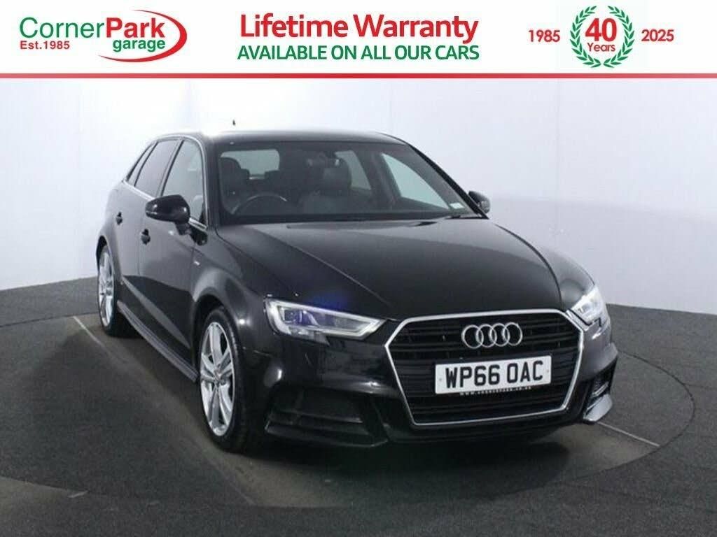 2 Owners. Full service history with 7 services. Last serviced at 49,777 miles (Full Service). Timing belt changed at 38,444 miles. The 2016 Audi A3 1.4 TFSI CoD S line Sportback offers a perfect combination of sporty styling and everyday practicality. Powered by a 1.4-litre petrol engine with 150 PS, it provides a dynamic driving experience while still offering impressive fuel efficiency, making it an ideal choice for those who enjoy performance and economy. The car comes with a range of high-end features, including alloy wheels, body-coloured bumpers, and privacy glass, giving it a sleek, modern look. Inside, you'll find partial leather seat trim for added comfort, as well as climate control to maintain the ideal cabin temperature. The height-adjustable driver's seat ensures a comfortable driving position, while the rear electric windows add a touch of convenience. Safety and practicality are key with 3x3 point rear seat belts, ABS, side airbags, and Isofix child seat anchor points. It also has a service indicator, ensuring you stay on top of your car's maintenance needs. The S line model includes all the essentials such as electric mirrors, front electric windows, and remote locking, making it easy to use day-to-day. Additionally, the mythos black metallic paint gives the car an elegant and timeless look. This 2016 Audi A3 1.4 TFSI CoD S line Sportback is a great option for anyone looking for a stylish, well-equipped hatchback with a balance of performance and practicality. If you're interested, get in touch for more details! All our cars are put through strict quality checks, and this one passed them all. For added peace of mind, we will ensure this will have a minimum of 6 months MOT where applicable. Our quality standards extend to your vehicle ownership. Finance is quick and easy, with a multitude of finance options, we can provide a deal tailored to suit you. Delivery available, all our cars are available online or in store, and any car can be delivered straight to your front door, or to your nearest branch. This car has been price-checked against the competition, and will be the cheapest available, or we will refund the difference! See website for terms. Search Corner Park to find us. We are based in the heart of South Wales, Swansea (M4 J42). Pop in or give us a call today!