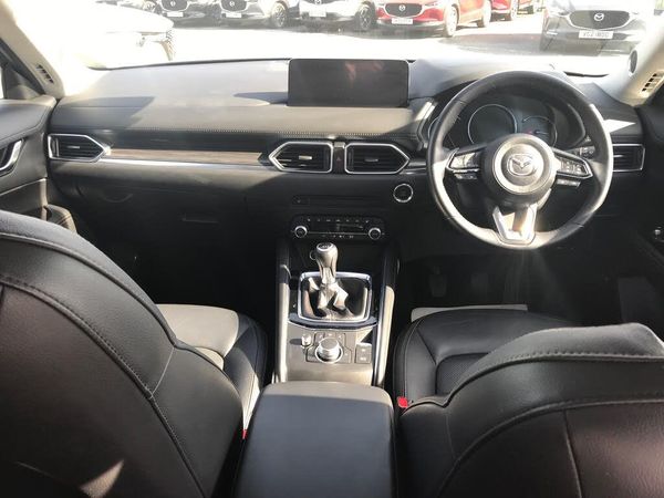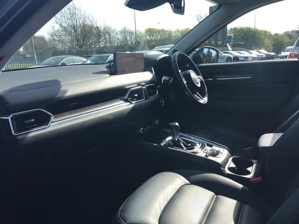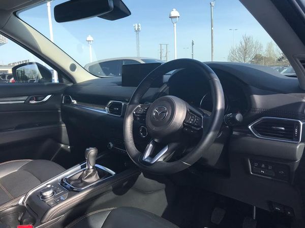10.25" display with Mazda Connect infotainment, 7" colour TFT display, Advanced blind spot monitoring, Bluetooth connectivity with voice control, Collision prevention assist, Connected services, Cruising Traffic Support, Electric power steering, Emergency stop signalling system, Engine start/stop button, Forward collision warning, Front and rear parking sensors, Integrated navigation system, Intelligent speed assist, Lane departure warning system, Lane keep assist, Power liftgate, Qi wireless phone charging, Radar cruise control, Rear cross traffic alert, Reversing camera, Service indicator, Traffic sign recognition (TSR), Trip computer, Windscreen projected colour active driving display (HUD) with memory, Wireless apple car play/android Auto, i-stop, AM/FM radio, Bluetooth audio streaming, Bose premium sound system with 10 speakers, DAB Digital radio, Multimedia Commander including separate volume dial, Steering wheel mounted audio controls, Adaptive front lighting system, Auto dimming rear view mirror, Automatic headlights, Black inlay dashboard panel, Body colour door mirrors, Body colour roof spoiler, Body coloured front and rear black lower bumper mouldings, Coming/leaving home lighting function, Door mirror integrated indicators, Dusk sensitive headlamps, Electric front/rear windows with one touch auto up/down, Front grille in gloss black finish, Front grille in gloss black finish with chrome signature wing, Gloss black B and C pillars garnish, High beam assist, Intermittent rear wash/wipe, LED auto levelling, LED daytime running lights, LED front fog lights, LED Headlights, LED third brake light, Power folding and heated door mirrors, Power tilt/slide sunroof, Privacy glass (rear side windows only), Rain sensing front wipers, Rear side wing doors, Satin black side mouldings, Scuff plates, Shark fin antenna, Signature LED rear combination lights, Single chrome tailpipes, Variable intermittent front wash/wipe, Vinyl with wood grain metal inlay door trim panel, Windscreen wiper de-icer, 12v electrical power outlet, 3 seat bench in 2nd row, 3 stage heated front seats, 40:20:40 Karakuri fold-flat seat system, 6 way electric adjustable passenger seat, 8 way electric driver seat with lumbar support + memory, Cargo room flat floor board with waterproof undertray, Driver seat power slide, recline and height adjustment, Driver, Front passenger and two rear grab handles with coat hooks, Driver/passenger front seatback pockets, Driver/passenger sunvisors + illuminated vanity mirrors (drivers with ticket holder), Dual zone climate control, Folding centre armrest with 2 cup holders, Front and rear door pockets, Front centre storage with two cupholders, Front passenger seat power slide, recline and height adjustment, Gear shift indicator, Heated steering wheel, Humidity sensor, Illuminated glovebox, Interior dome light with integral spotlight, ISOFIX child seat anchorage points attached on outer rear seats, Karakuri tonneau cover, Leather upholstery, Leather wrapped steering wheel and gear knob, Light roof lining, Luggage compartment LED lighting, Luggage compartment power outlet, Rear air vents, Rear headrests, Rear seat recline, Roof mounted sunglasses holder, Single front passenger seat, Three height adjustable head restraints, Tilt/height adjustable steering wheel, USB Connectivity (2x front Type-C, 2x rear Type-B), White interior LED illumination lighting, 3 point front seatbelts with pre-tensioners, 3 rear 3 point seatbelts, ABS, Advanced Smart City Brake Support - SCBS, Child locks on rear doors, Driver and front passenger side airbags, DSTC-Dynamic Stability and Traction Control, Dual front airbags, Electronic brake force distribution, Electronic parking brake with auto hold, ESP, Front and rear curtain airbags, Front passenger airbag deactivation, G-Vectoring control, Hill hold assist, Seatbelt reminder front and rear, Single stage passenger airbags, Smart brake support with forward obstruction warning, Tyre pressure monitoring system, Automatic door locking when moving off, Deadlock, Immobiliser, Power door locks, Remote central locking, Smart keyless entry, Thatcham Cat.1 alarm, 19" diamond cut black alloy wheels, Tyre repair kit