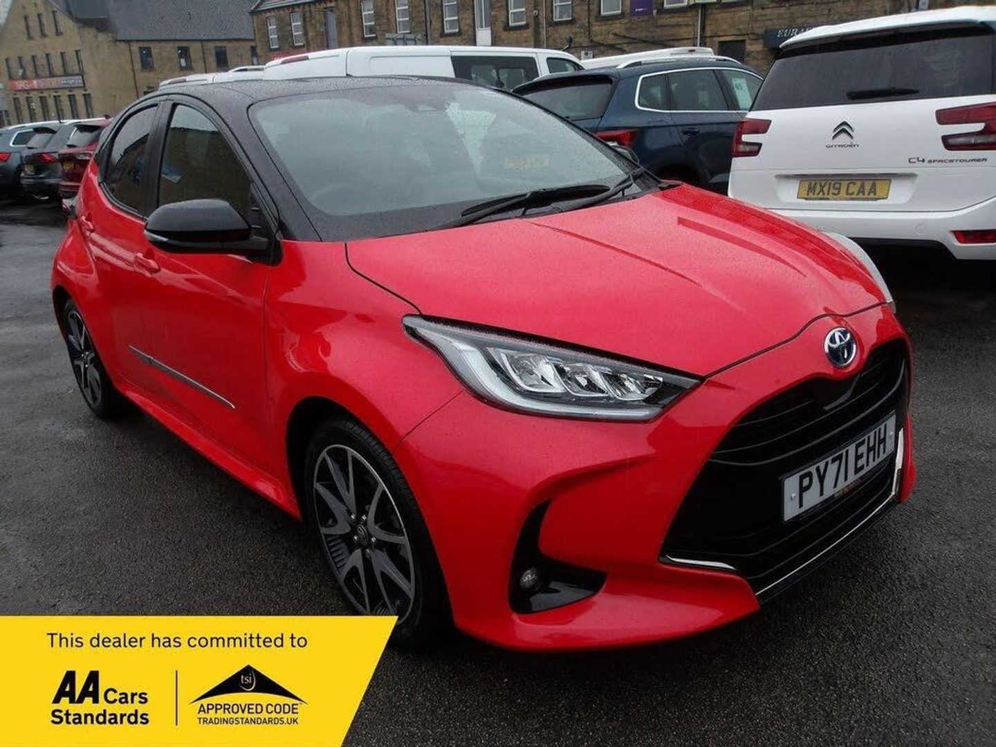 With only 14,000 miles on the clock, this 2021 Toyota Yaris VVT-h Launch Edition comes with full service history and a clear vehicle history check. This Euro 6 compliant Yaris is equipped with a 1.5L Petrol Hybrid engine. The trim is Launch Edition. For ease of parking, it has a reversing camera with rear parking assistance. The LED headlights provide excellent visibility. The interior is kept comfortable thanks to dual-zone automatic air conditioning with climate control. The driver is assisted by a 10in full colour head up display and blind spot monitoring. For peace of mind, a 6 month warranty is included and the MOT is valid until December 2025. This Yaris stands out with its impressive fuel economy of 66 mpg, meaning fewer trips to the petrol station. In addition, its low CO2 emissions mean you will likely pay less in road tax than you would for other similar vehicles.