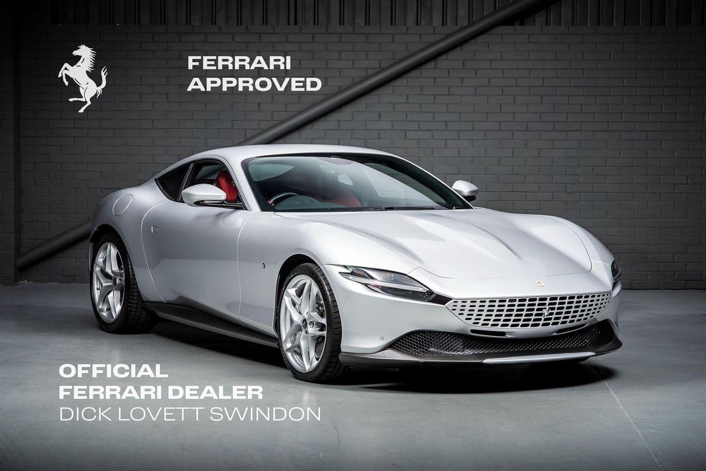 This stunning Ferrari Roma, finished in the striking Argento Nurburgring, combines timeless elegance with exhilarating performance. The interior features luxurious Bordeaux leather, complemented by sporty black Alcantara upholstery, creating a sophisticated yet dynamic atmosphere.Under the bonnet, the Roma is powered by a 3.9-litre twin-turbo V8 engine, delivering an impressive 620 horsepower and a 0-60mph time of just 3.4 seconds. Its balance of power and refinement ensures an exceptional driving experience, whether cruising or tackling the open road.This Roma is equipped with a range of desirable and valuable options, including a Carbon Fibre Rear Diffuser, Rear Active Spoiler, Under-Door Trim, Front Spoiler, Sill Kick, and a Carbon Fibre Steering Wheel – all adding to its performance-driven aesthetic.Additional premium options include Apple CarPlay for seamless smartphone integration, Magnaride suspension for an enhanced driving experience, and the Premium Hi-Fi system for audiophile-grade sound quality.As part of the Ferrari Approved programme, this Ferrari Roma comes with a full service history and is offered with a 2-year Ferrari warranty, ensuring peace of mind for its new owner. Purchase from Dick Lovett Ferrari, Europe’s leading pre-owned Ferrari dealership, for the ultimate in luxury, performance, and expert care.Don’t miss the opportunity to own this exceptional Ferrari Roma – a perfect blend of style, performance, and Ferrari pedigree.