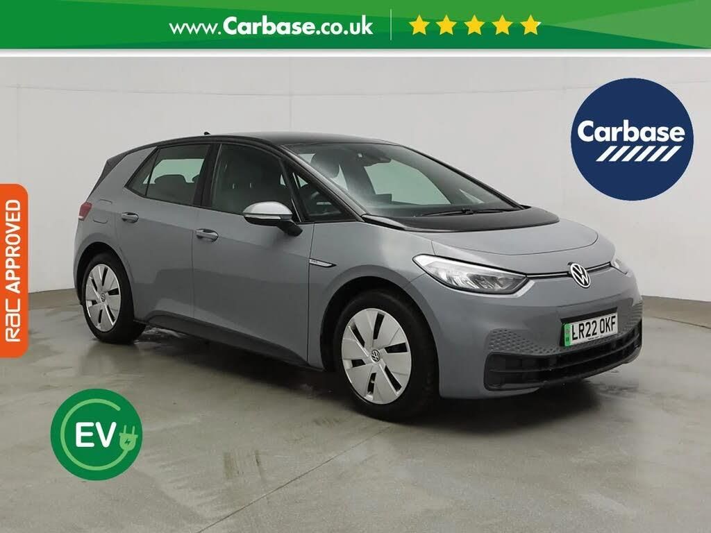 10" touch screen infotainment system,5.3" Digital dashboard display,Adaptive cruise control including Front Assist, radar sensor controlled distance monitoring system, City emergency braking system,speed limiter,BLIS (Blind spot information system),Bluetooth connectivity,Car2X technology,Driver alert system,Driver profile selection with personalisation,E-call,Front and rear parking sensors,ID. Light,Lane assist,Natural voice control,Power assisted speed sensitive steering,Remote tailgate unlocking,Security and service (SOS buttons),Trip computer,Wireless app connect,Exterior e-sound,Mode 3 32-amp / 7.2kW charging cable for charging at public charge points,DAB Digital radio,Sound system,Touch control,All LED headlights with reflector technology,Black roof,Body colour door handles,Body coloured bumpers,Body coloured door mirrors with intergrated indicators,Front and rear electric windows,Heated rear window,LED 3rd brake lamp,Rear side wing doors,Rear wiper,Separate LED daytime running lights which also perform the indicator function,Variable front intermittent wipers,1 Zone climatronic,3 seat bench in 2nd row,Driver seat height adjust,Folding rear seats,Fragment design cloth upholstery,Front headrests,Isofix child seat anchor points,Multi-function steering wheel,Pause and play pedals,Pockets and smartphone pockets in seats,Reach + rake adjustable steering column,Rear headrests,Single front passenger seat,Standard seats,Comfort pack - ID.3,Infotainment pack with wireless smartphone charging - ID.3,NCAP pack - ID.3,3x3 point rear seat belts,Anti-lock braking system (ABS),Child locks on rear doors,Driver and passenger airbags,Electronic parking brake with auto hold,Electronic Stability Programme (ESP),Front and rear curtain airbags,Front passenger airbag deactivation,Side airbags,Traction control with on/off button,Tyre pressure monitor,Alarm,Immobiliser,Keyless Go,Remote central locking,Tool kit,Tyre repair kit