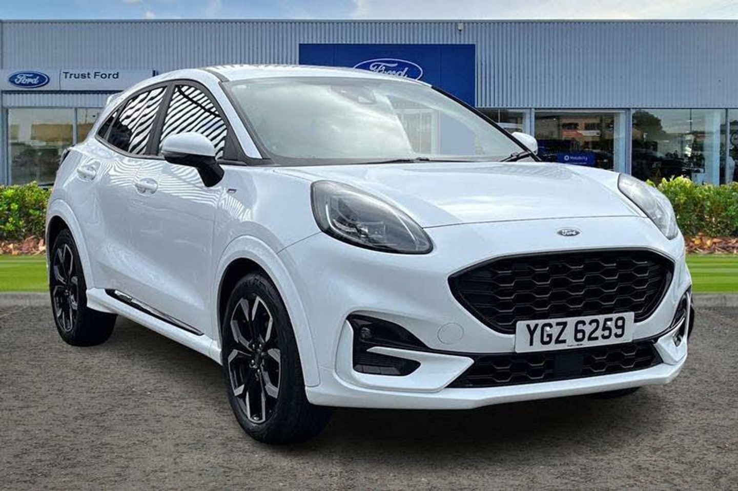 Driver impairment monitor, Emergency call service, Ford easy fuel, Full digital 12.3 instrument cluster, Lane keeping aid with lane departure warning, Power assist steering, Power start button, Rear parking sensor, Selectable drive modes(Normal, sport, Eco, trail, slippery), Speed sign recognition, Automatic headlights with auto high beam, Automatic rain sensing wipers, Front fog lamps, LED daytime running lights, LED rear lamps, Power foldable heated door mirrors with puddle lamps, Privacy glass to side rear windows and tailgate glass, Quickclear heated windscreen, Rear side wing doors, Rear wiper, ST-Line body styling kit with unique grille, Third brake light, 3 seat bench in 2nd row, Centre console with armrest and stowage, Ford megabox extended bootspace, Front and rear head restraints, Front floor mats, Manual 4 way driver seat adjust with lumbar adjustment, Manual 4 way passenger seat with lumbar seat adjustment, Sensico partial premium upholstery, Single front passenger seat, ST-Line flat bottomed sensico leather steering wheel with leather handbrake and aluminium gear knob, Wireless charging pad with electronic air temperature control (EATC), 3 rear seatbelts, Child safety lock, Electronic stability control (ESC) and hill start assist, Pedestrian/cyclist detection & post-collision braking, Pre collision assist system, Tyre pressure monitoring system (TPMS)