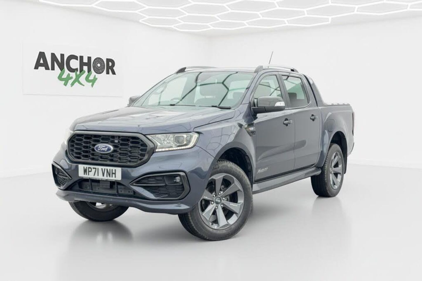 Leather interior.For sale: 2022 Grey Ford Ranger Crew Cab Auto 4x4 Wildtrak Ecoblue. This Euro 6 compliant pickup features an automatic transmission, robust 4x4 capability, air conditioning, a rear camera, and navigation system for ultimate convenience and versatility. The crew cab design offers ample space, while the Wildtrak Ecoblue edition combines rugged performance with an efficient diesel engine. Perfect for work, adventure, or both, this well-equipped truck is in excellent condition. No VAT applicable. Ready to drive away.