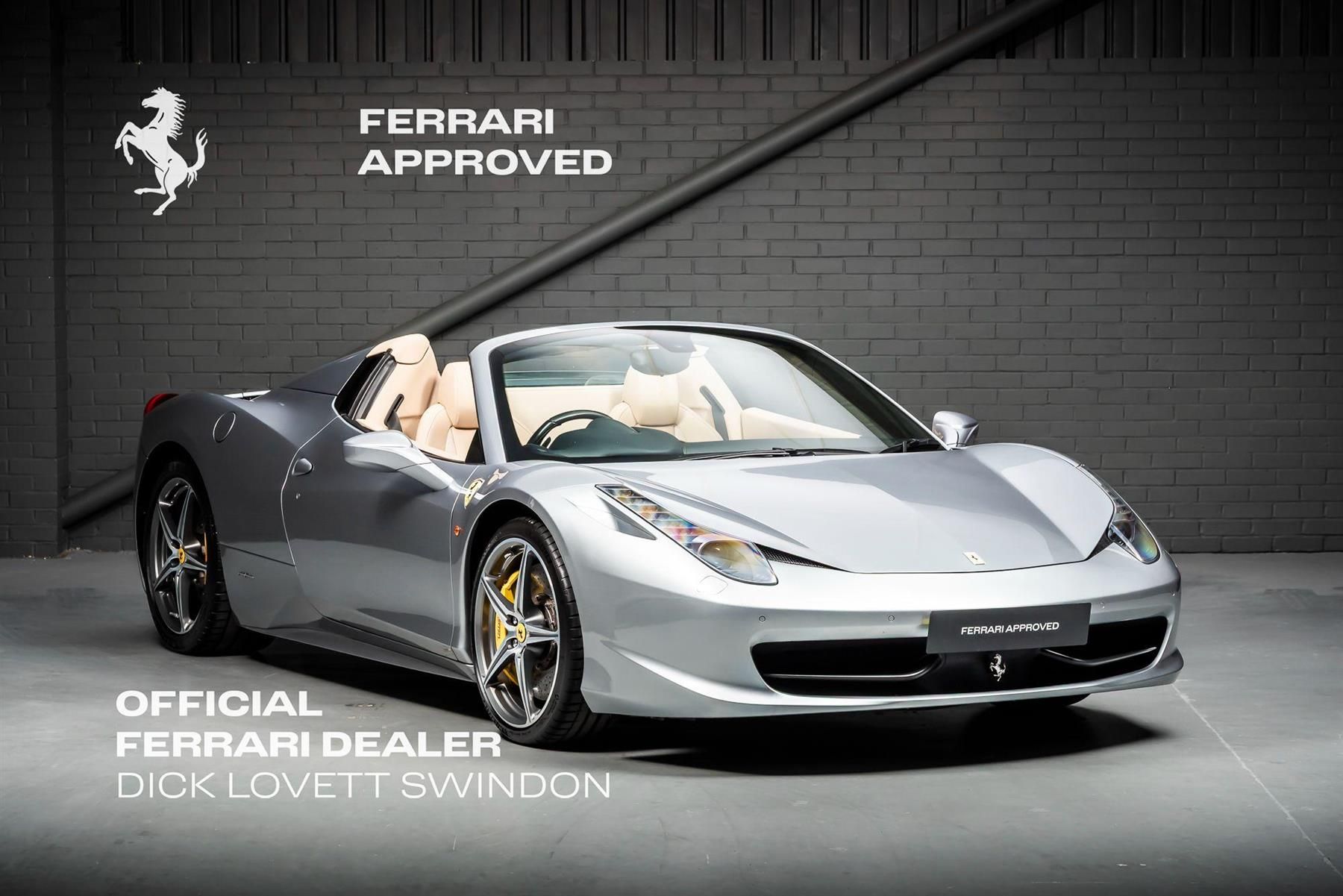 Presenting this exceptional Ferrari 458 Spider, finished in the sophisticated Grigio Titanio Metallic with a luxurious Sabbia leather interior. This stunning convertible is a true testament to Ferrari's renowned engineering and design, created by the iconic Pininfarina. The 458 Spider is powered by a naturally aspirated 4.3-litre V8 engine, delivering a spine-tingling 562 horsepower, enabling it to accelerate from 0-62 mph in just 3.4 seconds. Its performance is matched by its unmistakable sound, providing an exhilarating driving experience like no other.Equipped with a range of desirable features, this Ferrari 458 Spider includes Scuderia Ferrari shields on the front wings, a nod to Ferrari’s motorsport heritage. The suspension lifter ensures that the car can be raised for improved ground clearance, providing added practicality when navigating speed bumps or steep driveways. Full electric seats offer a perfect combination of comfort and convenience, while the cruise control system makes long-distance journeys a breeze.This Ferrari 458 Spider is presented with a full service history, ensuring it has been maintained to Ferrari’s exacting standards. As an approved Ferrari, it comes with the added reassurance of a 2-year Ferrari warranty, offering peace of mind and covering any potential concerns.Buying a Ferrari Approved 458 from Dick Lovett Ferrari, Europe’s leading Pre-Owned Ferrari Dealership, guarantees you the highest quality and service. With a complete service history and the backing of a 2-year Ferrari warranty, you can be confident in the car’s exceptional condition and performance. As an authorised Ferrari dealer, we offer expert advice and an unrivalled customer experience, ensuring your ownership journey is nothing short of extraordinary. Don’t miss the chance to own this remarkable Ferrari 458 Spider, combining unmatched performance, stunning looks, and pure driving pleasure.