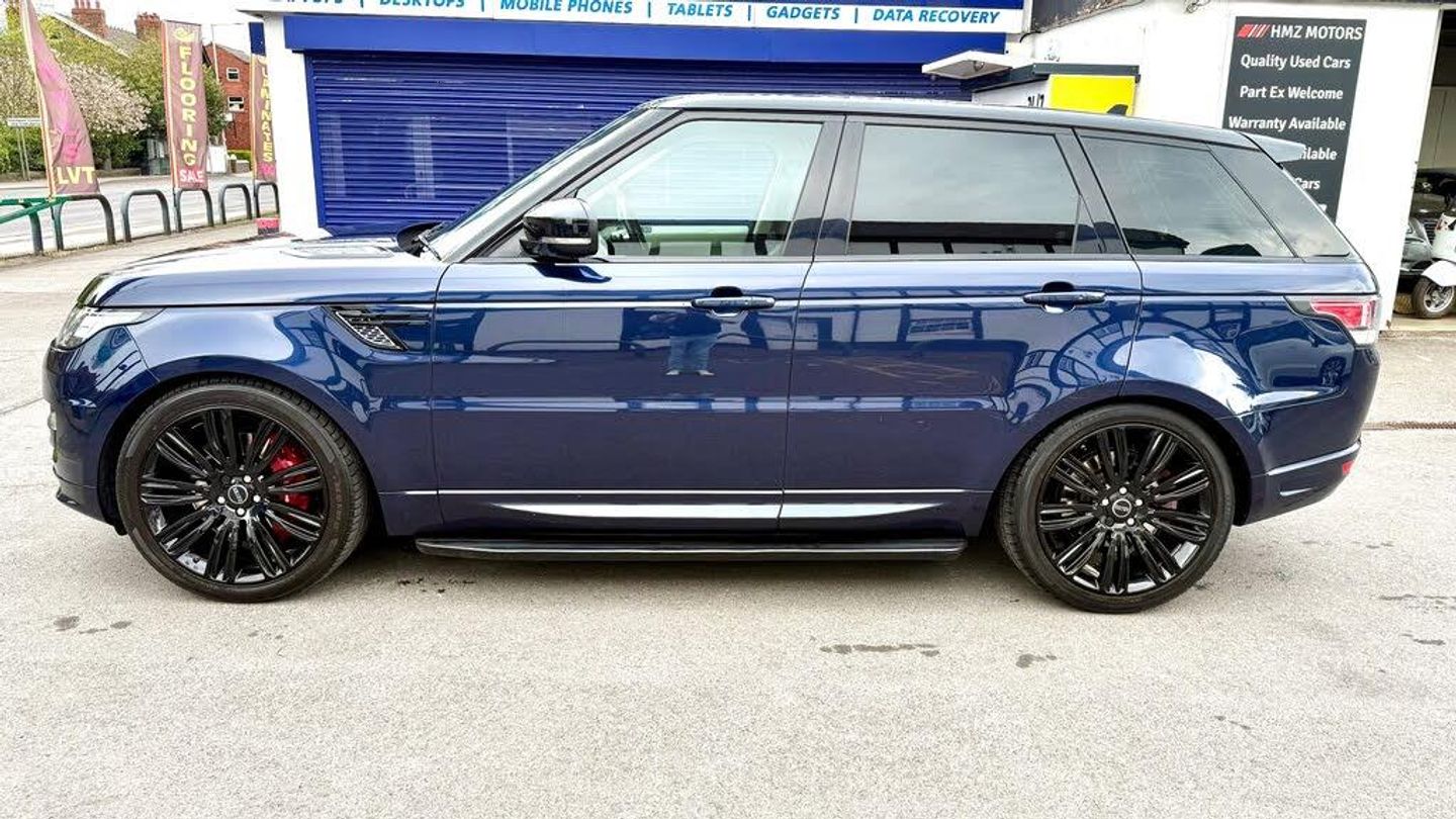 RANGE ROVER SPORT 3.0 SDV6 AUTOBIOGRAPHY DYNAMIC DIESEL AUTO BLUE 2015, PRIVATE PLATE WILL STAY ON CAR, IMMACULATE CONDITION, WELL MAINTAINED AND DRIVES VERY GOOD, DONE 116,000 MILES WITH SERVICE HISTORY, MOT EXPIRY 16-10-25, SPARE KEYS, SAT NAVIGATION SYSTEM, REVERSE CAMERA, BLUETOOTH, MERIDIAN SOUND SYSTEM, HEATED STEERING WHEEL, LEATHER INTERIOR, PANORAMIC ROOF, ELECTRIC SEATS, HEATED SEATS, 22 inch ALLOY WHEEL, SIDE STEPS, CLIMATE CONTROL, CRUISE CONTROL, PRIVACY GLASS, ALL OUR CARS ARE INSPECTED AND COME WITH WARRANTY FOR YOUR PEACE OF MIND.NATIONWIDE DELIVERY SERVICE AVAILABLE.HMZ MOTORS, 35-51 Buxton Rd, Stockport, SK2 6LSTEL: 07585 277240