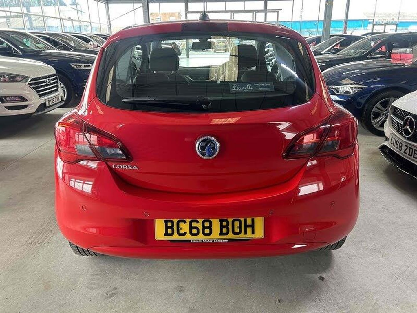 Apple car play/Android Auto, Central facia display, Cruise control + speed limiter, Digital fuel gauge with low fuel warning light, Digital water temperature gauge, Electric speed sensitive power steering, Exterior temperature gauge, Front and rear parking distance sensors with audible warning and distance warning graphic, Lights on audible warning, Multi function trip computer, Navi 4.0 IntelliLink navigation with 7" touchscreen,traffic program, DAB , USB, Bluetooth audio streaming, Apple CarPlay/Android auto, and microphone, Rev counter, Service indicator, Speed warning indicator, Speedometer, White graphics on black background, Front anti roll bar, Steering wheel mounted audio/cruise controls, Black door mirrors, Black foil on B-pillars, Body colour bumpers, Body colour door handles, Chrome front grille, Dipping rear view mirror, Door to door illumination, Electric adjustable/manual folding heated door mirrors (wide angle on driver's side), Electric headlight beam leveling, Electrically operated front windows with safety auto reverse/one touch facility, Front fog lights with black surround, Halogen headlights with halogen signature daytime running lights, Hazard warning lamps, Headlamp levelling, Heated rear window, Heated windscreen, High level LED centre brake light, Intermittent rear wash/wipe, Laminated windscreen, Rear fog lights, Rear wiper, Side window demist vents, Two speed windscreen wipers with variable intermittent wipe, Welcome lighting, Windscreen demist vents, 12V electrical accessory socket in front, 3 spoke steering wheel, 60/40 split folding rear seat, Anti submarining ramps in all seats, Centre console with cupholders, Chrome gear knob, Chrome interior door handles, Cloth upholstery, Comfort front seats, Driver's and front passenger's sunvisors, Driver's and front passenger's tiltable assist handles, Driver's and passenger's vanity mirrors with flip up cover, Driver's vanity mirror, Easy entry reclining front seats with memory, Four adjustable facia vents, Front courtesy lights, Front door pockets, Front map reading lights, Front seat belt pre-tensioners with load limiters, Glovebox with lid, Grab handles, Height adjustable driver's seat, Height adjustable front headrests, Height adjustable rear head restraints with adjustable backrest, Illuminated luggage compartment, Instrument panel light dimmer, Interior tailgate handles, Isofix child seat mounting points on outer rear seats, Load restraining lashing points, Luggage compartment cover, Multi function steering wheel, Passenger make up mirror, Pollen filter, Reach + rake adjustable steering column, Rear bottle holder, Rear courtesy lights, Reclining front seats, Storage box on driver's side lower facia, Storage pockets on front seat backs, Stowage facility for luggage compartment cover behind rear seats, Twin gas assisted tailgate struts, Sight and light Pack - Corsa, Winter pack - Corsa, Anti-lock braking system (ABS), Brake assist function, Electronic brake force distribution, Electronic Stability Programme, Energy absorbing steering column, Front and rear seatbelt reminder, Front and rear seatbelt unfastened audible warning and warning light, Front seatbelt force limiters, Gas pressure dampers, Height adjustable front seatbelts, Hill start assist, Passenger airbag deactivation system, Pedal release system, Rear child proof door locks, Reinforced passenger safety cell, Side impact protection beams, Six airbags - Driver's dual stage airbag/front passenger's dual stage airbag/front seat side impact airbags/full size curtain airbags, Three 3 point rear seatbelts, Three inertia reel lap/diagonal seatbelts, Traction control, Tyre pressure monitoring system, Electronically protected audio, Engine Immobiliser & Deadlocks, Key left in ignition audible warning, Locking wheel bolts, Remote control central locking, Visible vehicle identification number, Rhutenium facia with chrome effect inserts, Low rolling resistance tyres
