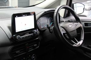 17in Alloy Wheels - 10 Spoke Flash Grey Machined, Adjustable Boot Load Floor, Air Conditioning - Electronic Automatic Temperature Control - EATC, Airbags - Curtain, Airbags - Driver and Front Passenger, Airbags - Drivers Knee, Airbags - Front Passenger De-Activation Switch, Alarm - Thatcham Category 1 with Volume Sensing and Perimeter, Ambient Lighting - Instrument Panel and Footwell, Analogue Instrument Cluster, Anti-Lock Braking System - ABS with Electronic Stability Control - ESC, Auto-Dimming Electrochromic Rear-View Mirror, Automatic Headlights, Centre Console Cup Holder with Chrome Accent, Centre Console with Covered Bin and Sliding Armrest, Child Locks, Chrome Headlight Bezel, Courtesy Light - Front with Two Map Lights, Courtesy Light - Rear, Cruise Control, Door Frame Beltline - Chrome, Door Handles - Body Colour, Door Mirrors - Body Colour Housing, Door Mirrors - Power-Foldable Heated with Integrated Side Indicator and Puddle Lights, Driver and Passengers Sun Visor with Covered Vanity Mirror and Ticket Strip on Drivers Side, Driver Seat Manual Height- Fore/Aft and Seatback Angle Adjustment and Recliner, Driver Seat Manual Rotary Knob Lumbar Support Adjustment, Drivers Stowage Glovebox, Emergency Assistance, Engine Immobiliser, EPAS - Electric Power Assisted Steering, ESP - Electronic Stability Programme with Hill Launch Assist, Ford Easy Fuel - Capless Refuelling System, Ford SYNC 3 Navigation with 8in Touchscreen, Front and Rear Bumper - Body Colour with Dark Insert, Front and Rear Floor Mats, Front and Rear Folding Grab Handles, Front and Rear Power Points - 12V, Front Fog Lights and Turn Indication Light Bezel - Body Colour, Front Fog Lights with Combined Turn Indication Light, Front Grille - Chrome, Front Seat - Passenger Manual - Fore-Aft and Recline Adjustment, Front Seat - Under Passenger Seat Stowage, Front Seats - 2-Way Head Restraint Up-Down, Front Seats - 3 Point Seat Belts with Load Limiter and Seatbelt Height Adjust, Front Seats - Seat-Back Map Pockets, Front Suspension - Independent with MacPherson Struts and Anti-Roll Bar, Full Length Overhead Console with Sunglasses Holder, Gear Shift Indicator, Gearshift Knob - Black Insert and Chrome-Finish Ring, Glovebox with Cool Bin - Lid and Illumination, Halogen Rear Lights, Handbrake Grip - Leather-Trimmed, Headlights - Courtesy Delay, Headlights - Levelling Control, Headlights - Projector Beam Headlight with LED Daytime Running Lights, Height Lumbar Adjustment on Drivers Seat, High Mounted Brake Light, IPS - Intelligent Protection System, Keyless Start with Ford Power Start Button, Leather Handbrake and Gearknob, Load Compartment - Lights, Load Compartment Carpet, Load Compartment Side Trim Incorporating Shopping Hooks, Lower Body Side - Door Claddings - Black with Chrome Insert, Manual Parking Brake, MyKey, Power Front and Rear Windows with Global Opening-Closing, Quickclear Heated Front Windscreen with Heated Washer Jets, Rake Adjustable Rear Seat, Rear Seat - 60-40 Split Folding Seats, Rear Seats - 2-Way Head Restraint Up-Down, Rear Seats - Centre Head Restraint - Up-Down, Rear Seats - Retractable Rear Seat Belt - 3-Point All Positions, Rear Suspension - Semi-Independent Twist Beam with Twin Gas and Oil-Filled Shock Absorbers, Rear View Camera Pack, Remote Central Locking, Rocker Panel and Side Cladding - Black, Seat Belt Reminder System - Drivers and Front Passengers, Seats - ISOFIX Mounting Provision for Child Seats - Outer Seats Only, Side Impact Door Beams, Silver Roof Rails, Soft Instrument Panel Cover, Steering Column - Rake and Reach Adjustment, Steering Wheel - Leather-Trimmed with Chrome Inserts, Suspension - Front Stabiliser Bar, Tailgate Handle - Chrome, Threshold Plates - Front - Stainless Steel with EcoSport Logo, Tie-Down Hooks, Trip Computer, Tyre Inflator Kit, Tyre Pressure Monitoring System, Tyre Repair Kit, Wipers - Front - Automatic with Rain Sensor, Wipers - Rear Wash-Wipe - Intermittent