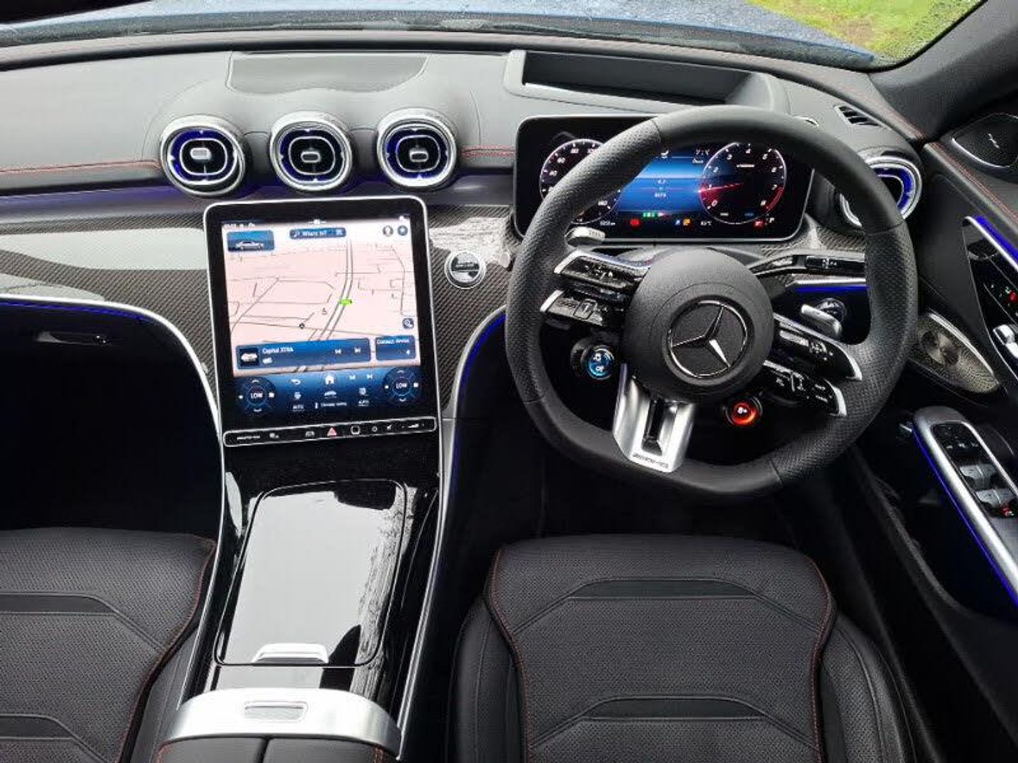 Manufacturer Approved Used, Mercedes-AMG, 24 month AMG warranty when purchased from Mercedes-Benz , Balance of warranty, MBUX multimedia system, Interior lighting - 64 colour Ambient lighting, Parking package with 360 degree camera - C Class, Guard 360 degree vehicle protection, Attention assist, Head up Display, Traffic sign assist, Heated front seats, Burmester 3D surround sound system, 11.9" high resolution multimedia colour display, AMG DYNAMIC SELECT with a choice of driving modes (Slippery, Comfort, Sport, Sport+, Individual), Seat comfort pack - C Class, Memory package - C Class, AMG sports seats, Mirror pack - C Class, Exhaust system with two round twin tailpipe trim elements in high gloss chrome, 3 spoke flattened bottom AMG multifunction steering wheel in black nappa leather with chrome inserts and perforated leather in grip area, MBUX navigation premium, Artico man-made leather dashboard with contrast stitching, Interior lighting package - C Class, Smartphone integration, Wireless charging system for mobile devices, AMG body styling front apron, rear apron and side skirts, Digital light LED headlights with projection function, 20" AMG 5 twin spoke light alloy wheels in tantalite grey with high sheen finish