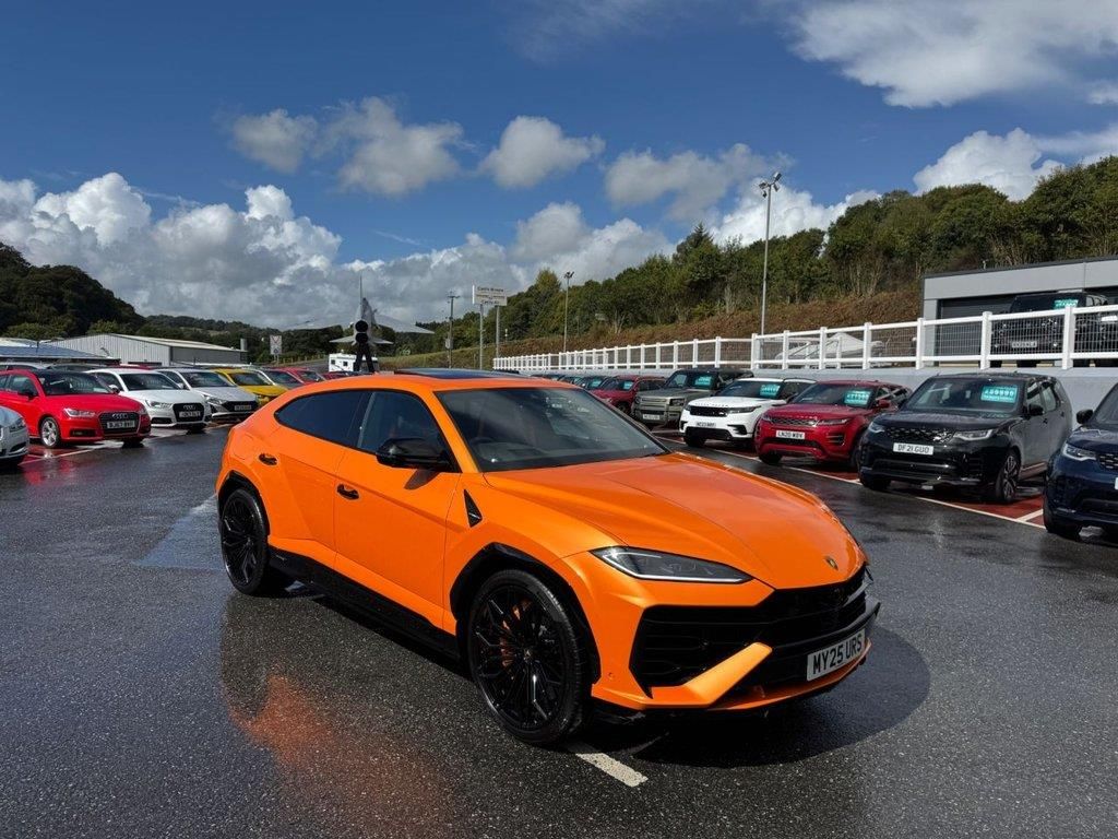 2025 delivery mileage LAMBORGHINI URUS SE 789hp Hybrid Model with over £55,000 in cost options. Arancio Borealis Pearlescent with Nero Sportivo leather, huge factory specification in stock with delivery miles. Carbon Fibre interior package, 23 inch Gloss Black Galanthus wheels with Orange brake calipers, ambient lighting package, Bang & Olufsen B&O Premium Hi-Fi, Arancio Leonis seat belts, high gloss Black Style Package, fully electric seats with Orange stitching, floor mats, rear Lamborghini Logo in gloss Black, Lamborghini ANIMA Driving Modes, panoramic glass sunroof, Black Anodized treatment, embroidered Lamborghini shield, matt Black exhaust pipes, Black mirrors, spoiler, handles, bumper inserts, rear spoiler & more, Parking Assistance Package +++. MY25URS Cherished plate available. Physically in stock to drive home today & VAT Q for business or export. All of our vehicles are ready for same day drive away. CASTLE MOTORS purpose-built showroom & forecourt has a wide range of cars for sale, including some of the world's most prestigious automobiles. Founded in 1972, we are open 7 days a week. All of our vehicles are presented to the very highest standards possible having gone through our own comprehensive multi-stage preparation. Supplied finance figures are only a guide. Every effort has been made to ensure the accuracy of the above info but errors can occur please check with our sales team. . 21in Alloy Wheels - Nivale Shiny Silver Rims,23in Alloy Wheels - Galanthus Shiny Black Rims,ABS - Anti-lock Braking System,Airbag - Driver,Airbag - Passenger,Ambient Light Package,Arancio Borealis,Bang and Olufsen Advanced 3D Audio System,Black Matt Exhaust Tailpipes - Ad Personam,Brake Calipers - Orange,Brake Calipers - Silver,Brushed Steel Exhaust Tailpipes,Connected Services,DAB Radio,Door Handles in Shiny Black,Electric Panorama Roof,Electric Windows Lift with One-Touch Operation,Electromechanical Power Steering,Floor Mats - Bicolour - Basic Colour-Contrast Colour,Floor Mats with Leather Piping and Double Stitching,Full Electric Front Seats with Ventilation and Massage,Head Up Display - HUD,Highway Assistant Package,HMI,Lamborghini ANIMA with Off-Road Modes,Lamborghini Telemetry,Lamborghini Warranty 4th Year,Lamborghinia ADAS - Advanced Driver Assistance System,Maintenance Pack - 5 Years,Matrix LED Headlights,Mirror Housings in Shiny Black,Multi Function Steering Wheel in Leather,Optional Stitching,Option