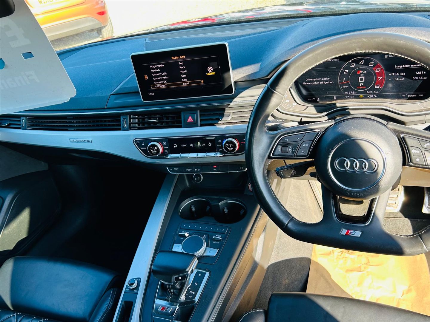 2017 67 Audi S4 Avant 3.0 TFSi V6 - Has covered 91k with service history - Will be supplied with 12 months Mot - Euro 6 - Great spec - Extended Warranties available - Finance Available - Part Exchange Welcome . Features Include: , 19in alloy wheels - 10-v spoke design, aluminium roof rails, aluminium-effect door mirror housings, anti theft locking wheel bolts, brake calipers painted in black with s4 logo at the front, door handles with chrome trim, door mirrors - electrically adjustable and heated with built-in led indicators, electric windows - front and rear, high gloss package, key with s4 logo, rear spoiler, s radiator grille in twilight grey matt with dual struts in aluminium and s4 logo, s rear diffuser in twilight grey - matt and honeycomb grille in black, s specific air inlets in titan black with chrome inlays in unique s design, s specific dual-branch chrome tailpipes with twin oval pipes each on left and right, space saver spare wheel, windscreen with acoustic glazing, 4-way electric lumbar support, auto-dimming rear-view mirror, cloth headlining in black, deluxe 3-zone electronic climate control, electric load area cover, electrically adjustable front seats, extended interior upholstery pack, flat bottomed 3-spoke leather high multi-function steering wheel, front centre armrest, gear-lever knob in black leather, gear-lever with diamond s badge, heated front seats, illuminated door sill trims with s logo, inlays - matt brushed aluminium, keyless go, led interior light package, pedals and footrest - stainless steel, power operated tailgate, s instrument dials, split-folding rear seat bench in 3 parts - 40-20-40 with rear centre armrest, sun visors - with vanity mirror, tool kit and car jack, 6-airbag system, anti-theft alarm, esc - electronic stabilisation control inc abs - asr and edl, first aid kit and warning triangle, isofix child seat mounting and top tether, multi collision brake assist, parking system plus, pop-up bonnet for pedestrian protection, pre-sense city, remote central locking, seat belt monitoring, audi beam - exterior puddle lighting with audi rings logo, high-beam assist, led headlights with led rear lights and dynamic rear indicators, light and rain sensor, audi connect - 3 year subscription, audi connect safety and service - e-call, audi smartphone interface, audi sound system, bluetooth interface, cd drive, dab digital radio, driver information system - 7in colour display, mmi navigation plus with 8.3in high resolution colour screen, towbar preparation, two usb charging ports, audi drive select, cruise control system with freewheeling capability and speed limiter, electromechanical power steering, mmi touch control panel, s model enhanced braking system, s sport suspension, tyre pressure warning light, voice control