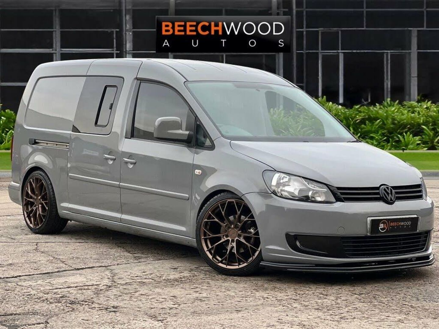 Beechwood Autos has over 60 Custom VW Caddy's in stock and our passion and vision for new and individual styles of VW Caddy vans have attracted some of the best craftsmen and suppliers in the industry working with us to create one off custom builds. We specialise in transforming the VW Caddy beyond the standard into fully customised sport vans with bespoke leather, custom paint, Sportline, ABT and other top branded parts, we aim to offer our customers quality products and excellent value for money, from simple VW Caddy's builds to completely radical custom Caddy's. So for any VW Caddy needs come and see what we've got in stock, there's always plenty of custom transformations on the go, and if we don't have it, we'll build it for you, to your exact specification! A Luxury Vehicle WITH A BED and DVD REAR CONVERSION at an Affordable Price, 19 INCH RIVIERA ALLOY WHEELS, Gold R seats, Golf GTI steering wheels and gear shifter, Upgraded Colour Coded Bumpers, Lowered 75mm on PROSPORT Coilovers Front & Rear, Colour Coded Rear Spoiler, ABS Gloss Black Splitter Spoiler, ABS Front Splitter, Gloss Black Grills. We can further customise this Caddy to you exact specification! Part exchange considered., Open until 10pm, 7 days a week!, Please call to arrange a viewing or test drive., Buy with confidence from Beechwood Autos,