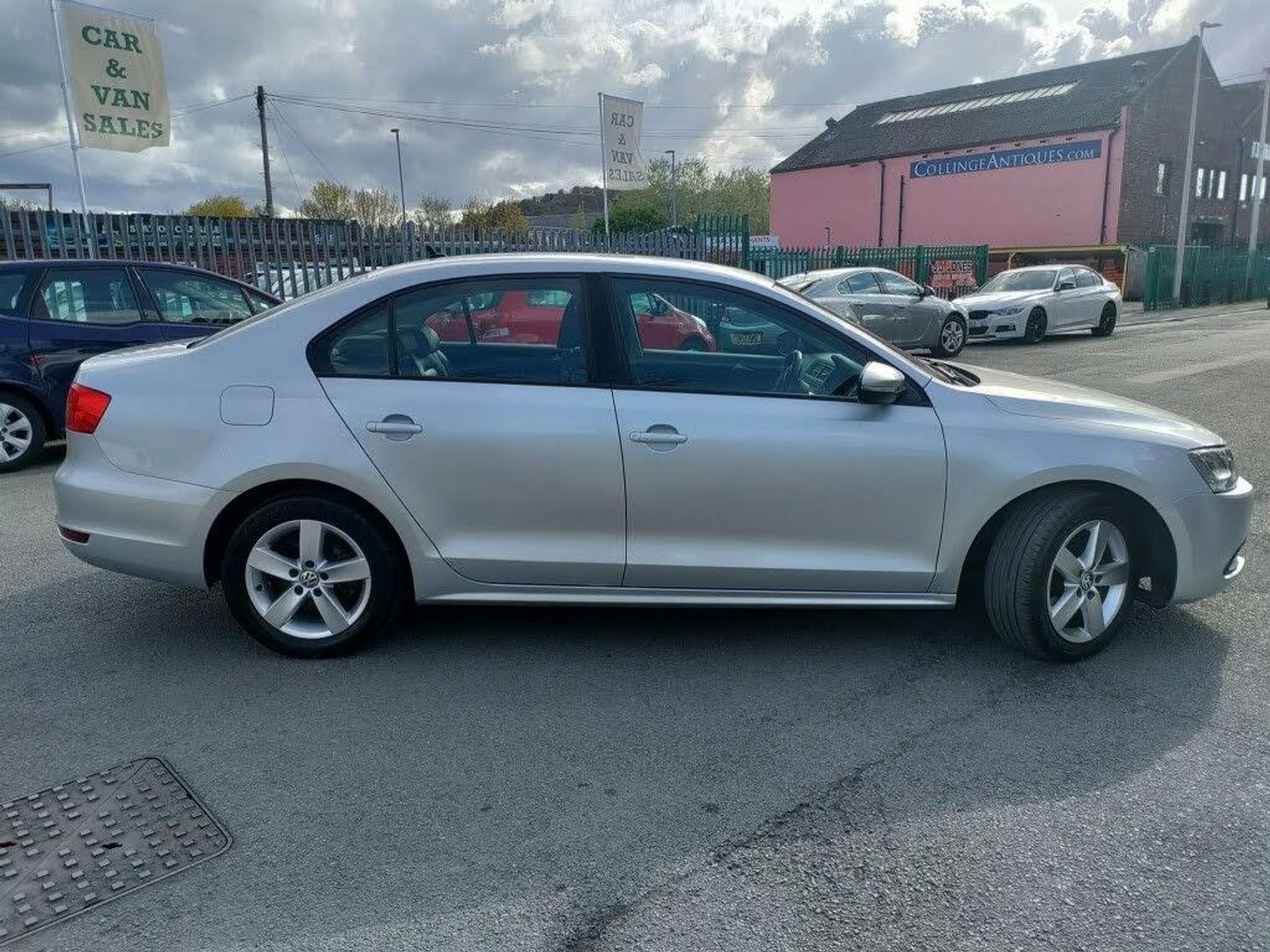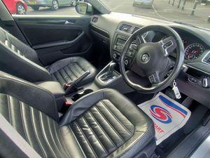 Volkswagen Jetta 2.0 TDI CR 140 SE DSG Automatic in Silver with Full Service History. Features include 'Lights On' Reminder warning buzzer, Automatic boot opening, Bluetooth Telephone preparation, Cruise control, Exterior temperature gauge, Multifunction computer - Midline, Remote fuel filler release, Service interval indicator, Speed sensitive power steering, Warning buzzer and light for front seatbelts unfastened, Multi device interface, Body colour door handles, Body colour door mirrors with integral indicators, Body coloured bumpers, Daytime running lights, Electric heated + adjustable door mirrors, Front and rear electric windows, Heated rear window with timer, 12V socket in luggage compartment, 3 rear headrests, 60/40 split rear seat back, Ashtray and cigar lighter, Bag hook in luggage compartment, Chrome-plated gear knob surround, Chrome-plated handbrake button, Driver/passenger front seatback pockets, Dust/pollen filters, Front centre armrest with storage/12V socket/2 rear air vents + cupholders, Front comfort seats, Front door pocket bottle holders, Front reading lights, Front seats with height+lumbar adjust, Height/reach adjust steering wheel, Illuminated vanity mirrors, Interior light with delay, Isofix Preparation 2 Rear child seats, Lockable/illuminated air conditioned glovebox, Luggage compartment lighting, Rear centre armrest, Rear cupholders, Storage compartment in roof console, Storage tray on dashboard, Warning lights in all doors, White adjustable panel illumination, 3 point height adj front seatbelts + pretensioners, 3 rear 3 point seatbelts, ABS, ASR traction control, Auto hold function, Driver/Front Passenger airbags, Driver/Passenger whiplash optimised head restraints, ESP, Front and rear curtain airbags, Front seat side impact airbags, Hydraulic Brake Assist (HBA), Passenger airbag deactivate switch, Alarm with interior protection, Electronic engine Immobiliser, Remote central locking with 2 remote folding keys, Pyramid black decorative inserts. Come and Test Drive today at Station Car Sales in llandudno junction or call us on 01492 330808